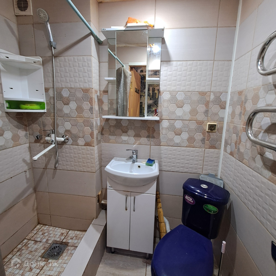 Площадь квартиры 29,1 кв. м.   Санузел совмещённый в кафеле, есть счетчики на воду, в квартире газовая колонка (горячая вода всегда). Пластиковые окна, хорошая входная дверь, в коридоре вместительный шкаф для хранения одежды, обуви и пр. Счетчик на электричество в квартире. Мебель и техника остается новому хозяину.