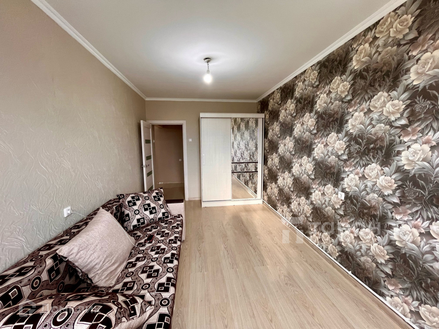 Продам однокомнатную квартиру с автономным отоплением в новом доме, общая площадь - 39,7 квадратных метров, 5 этаж десятиэтажного дома, выполнен качественный ремонт, дорогие обои, санузел в кафеле, теплая лоджия, остается кухня встроенная и шкаф-купе в спальне.