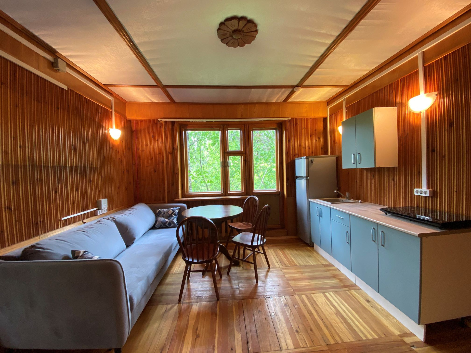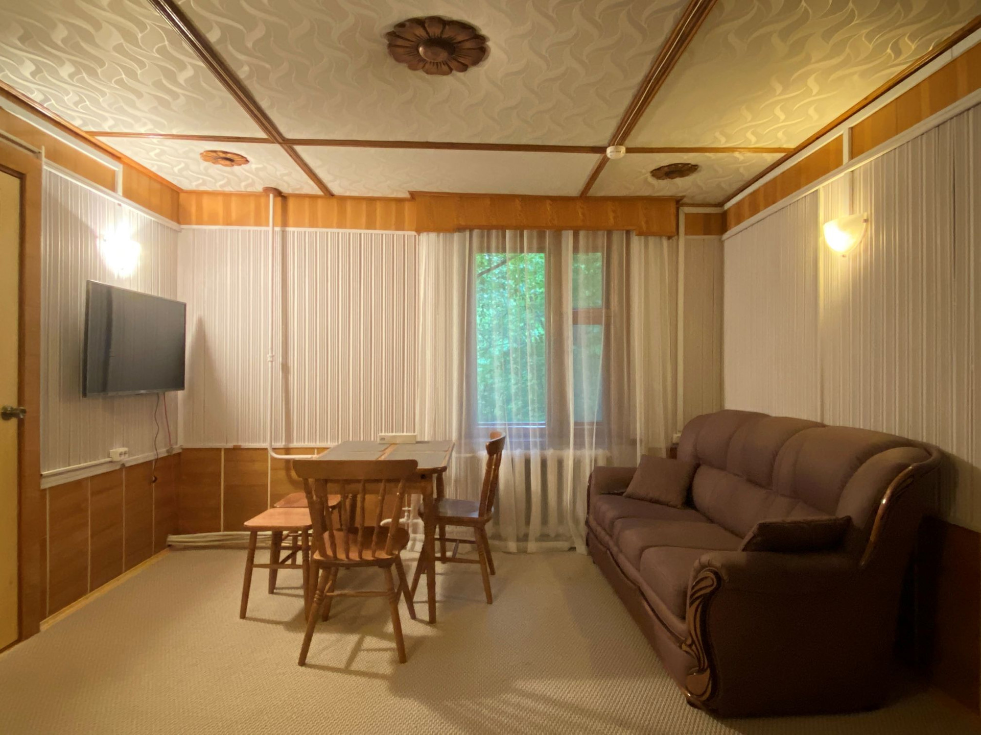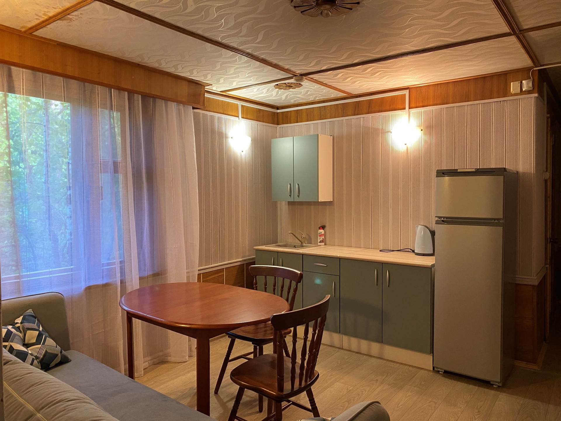 Двухкомнатная квартира: гостиная, спальня, кухня, санузел, веранда. Всего 4 спальных места. Стоимость 4500 в сутки.
