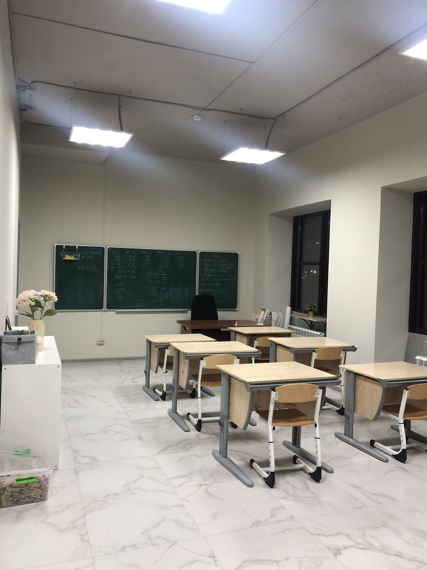 5 кабинетов 30-45 метров используются для обучения.