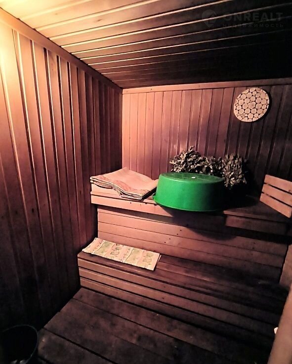 - Баня/сауна из пеноблоков, внутри вся обшита евровагонкой. Отдельная парная, помывочная и комнатная отдыха