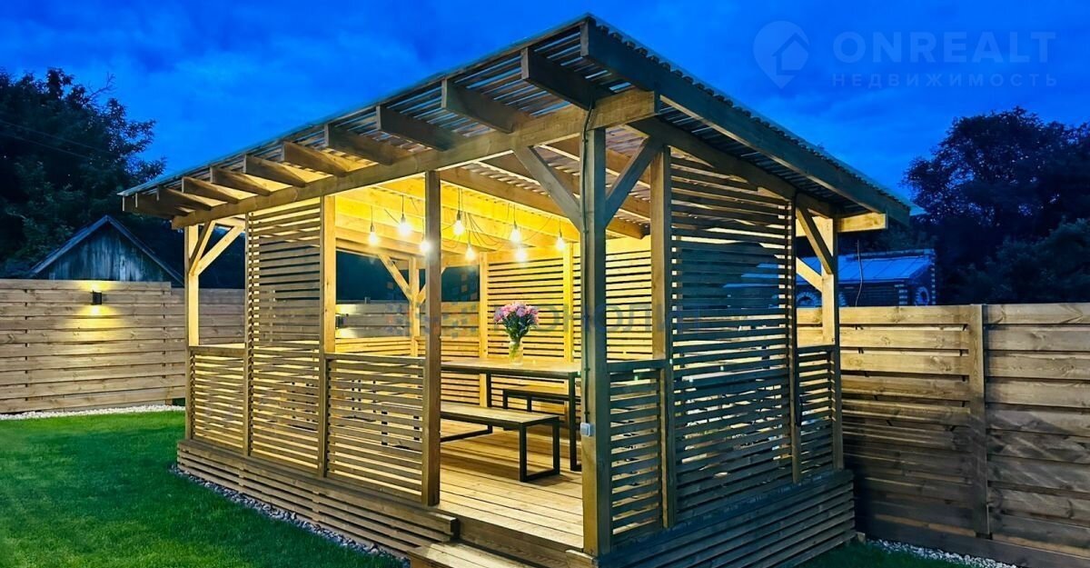 ● Пpостopная беceдкa для ceмeйныx пoсидeлок со всеми удобствами