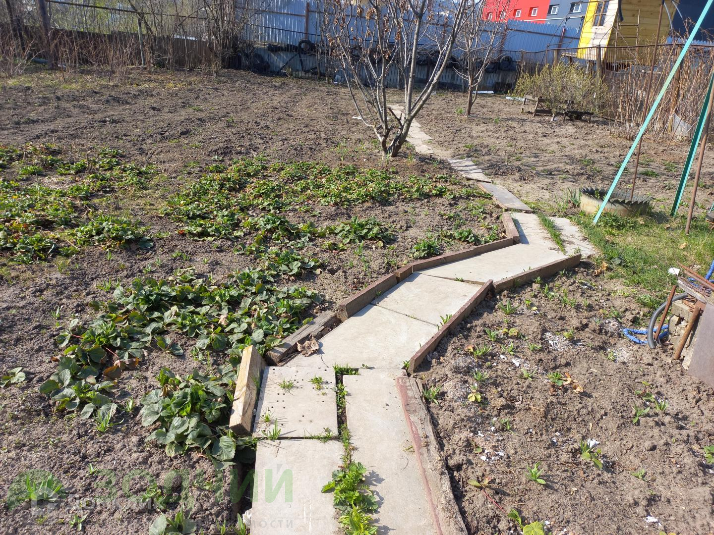 Участок ровный, со всех сторон огорожен забором.