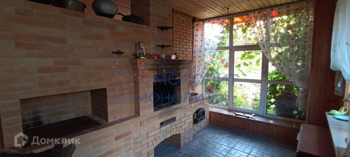 1 этаж обеденная зона с камином и кухней - печь. крытая теплица.