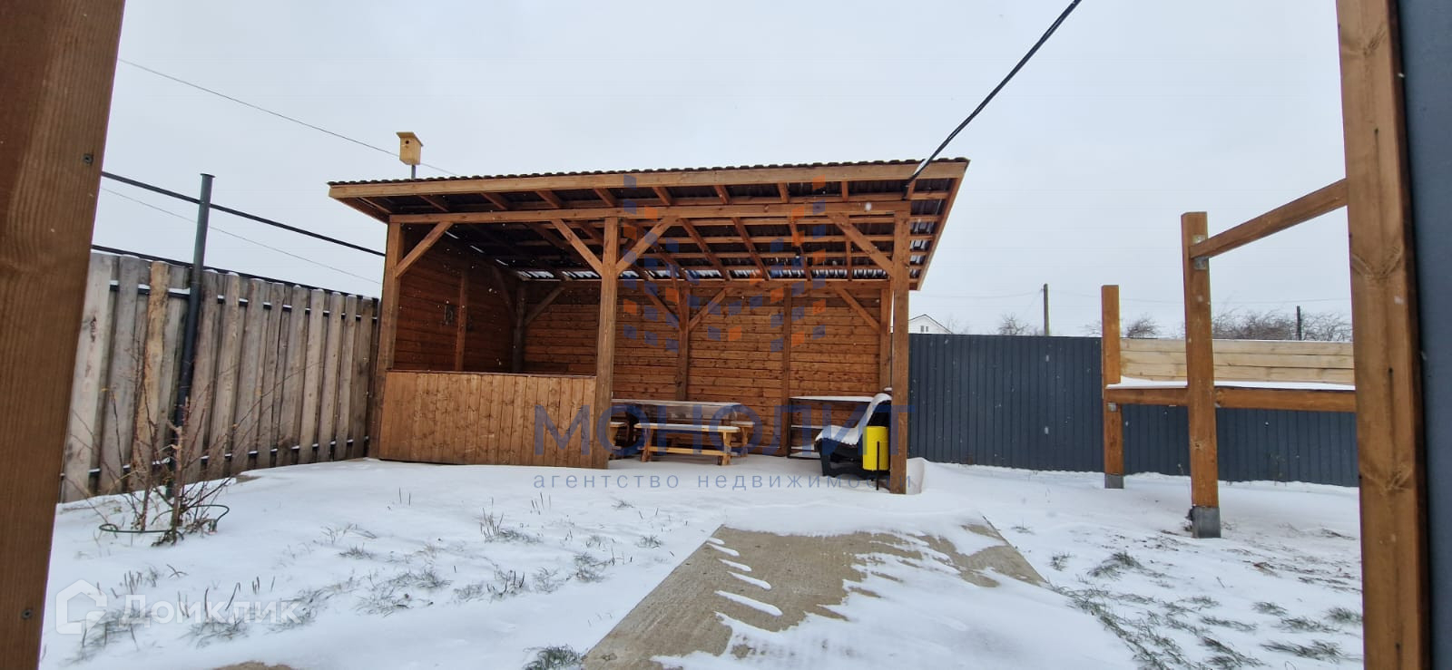 - На территории дома обустроена уютная крытая беседка с столами, скамьями и мангалом для приятного времяпрепровождения на свежем воздухе.