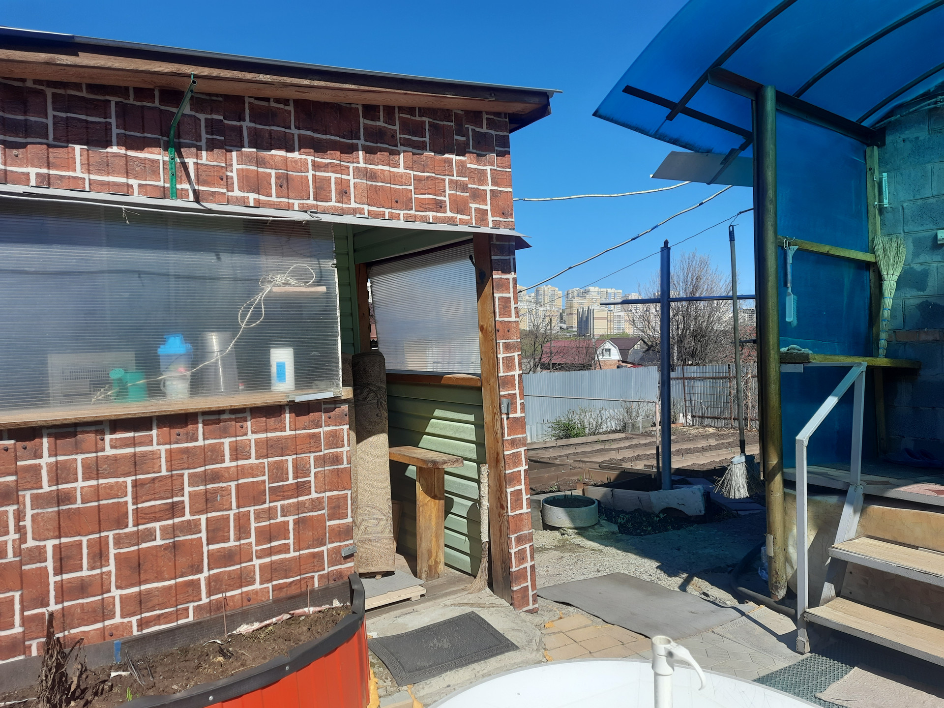 На участке есть баня, сарай, хозблок, теплица, погреб, сухой подпол.