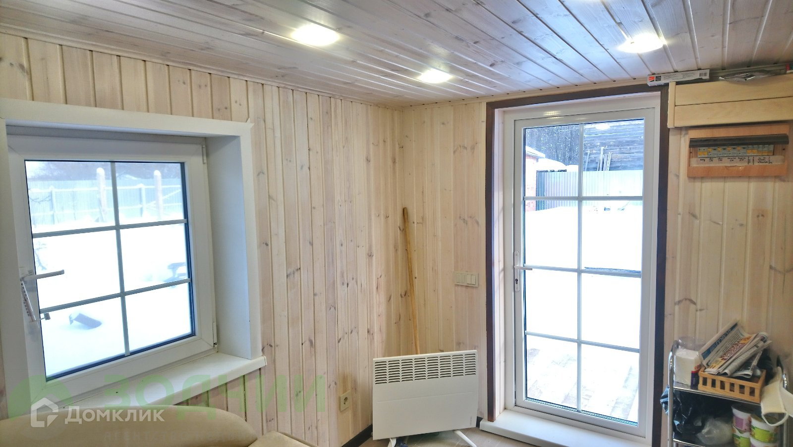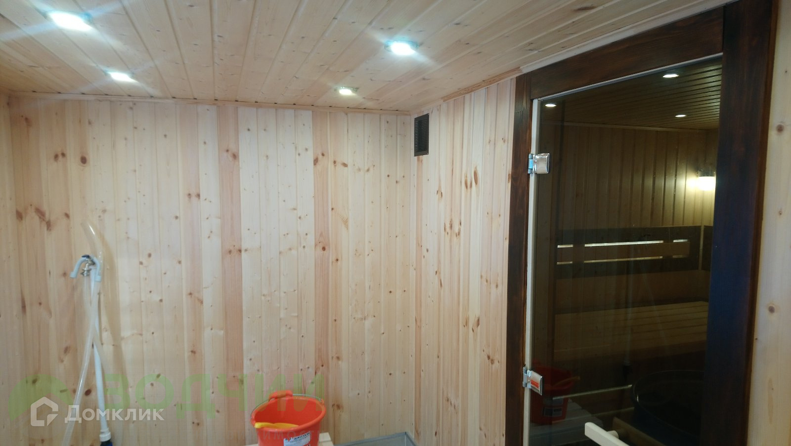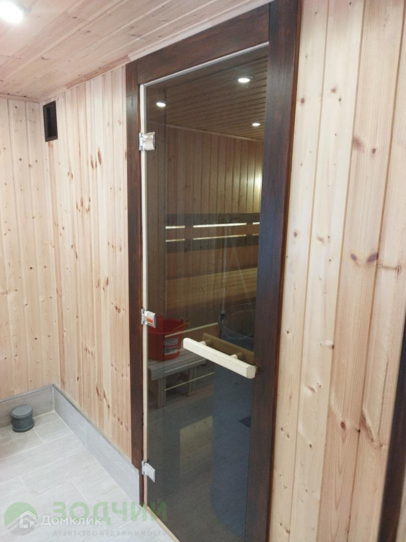На участке новая современная баня из сруба. Общая площадь 40 кв.метров. Первый этаж комната, помывочная и парилка с дровяной печью «Теплодар» с внутренним теплообменником и выносным баком. Второй этаж — комната отдыха. Баня полностью обшита вагонкой, на полах керамогранит с подогревом. Круглогодичная автоматическая подача воды.
