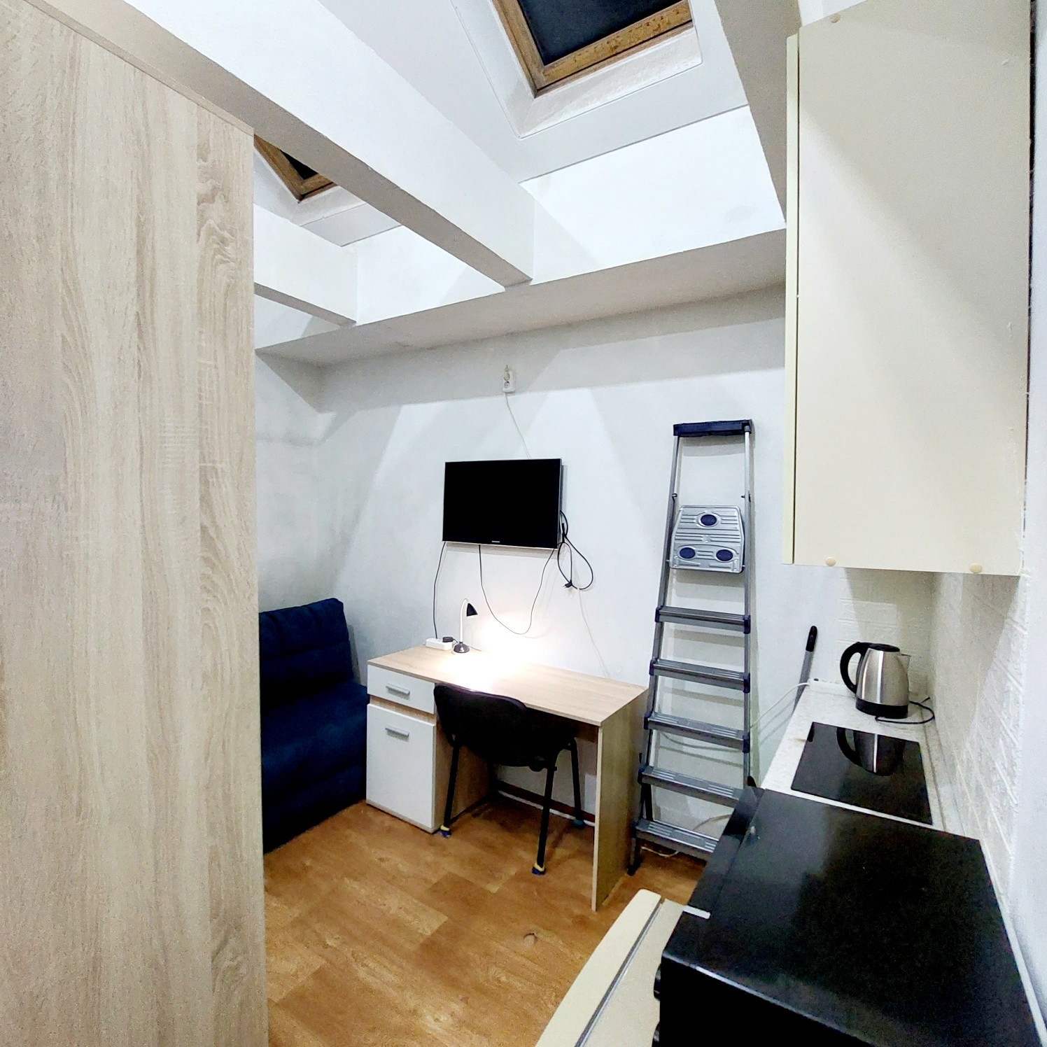 Продаю студию-аппартаменты. По документам нежилое помещение. В комнате два мансардные окна. высота потолка 3 метра. Есть возможность сделать 2 ярус. Счетчики установлены на воду и электричество. В комнате тёплые полы,  установлен электрический водонагреватель. Один собственник.  Обременений нет. Свободна от проживания.  Ключи в день полного расчёта