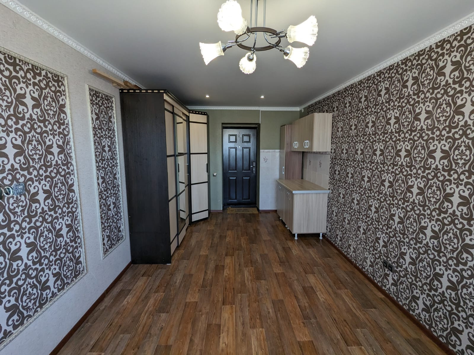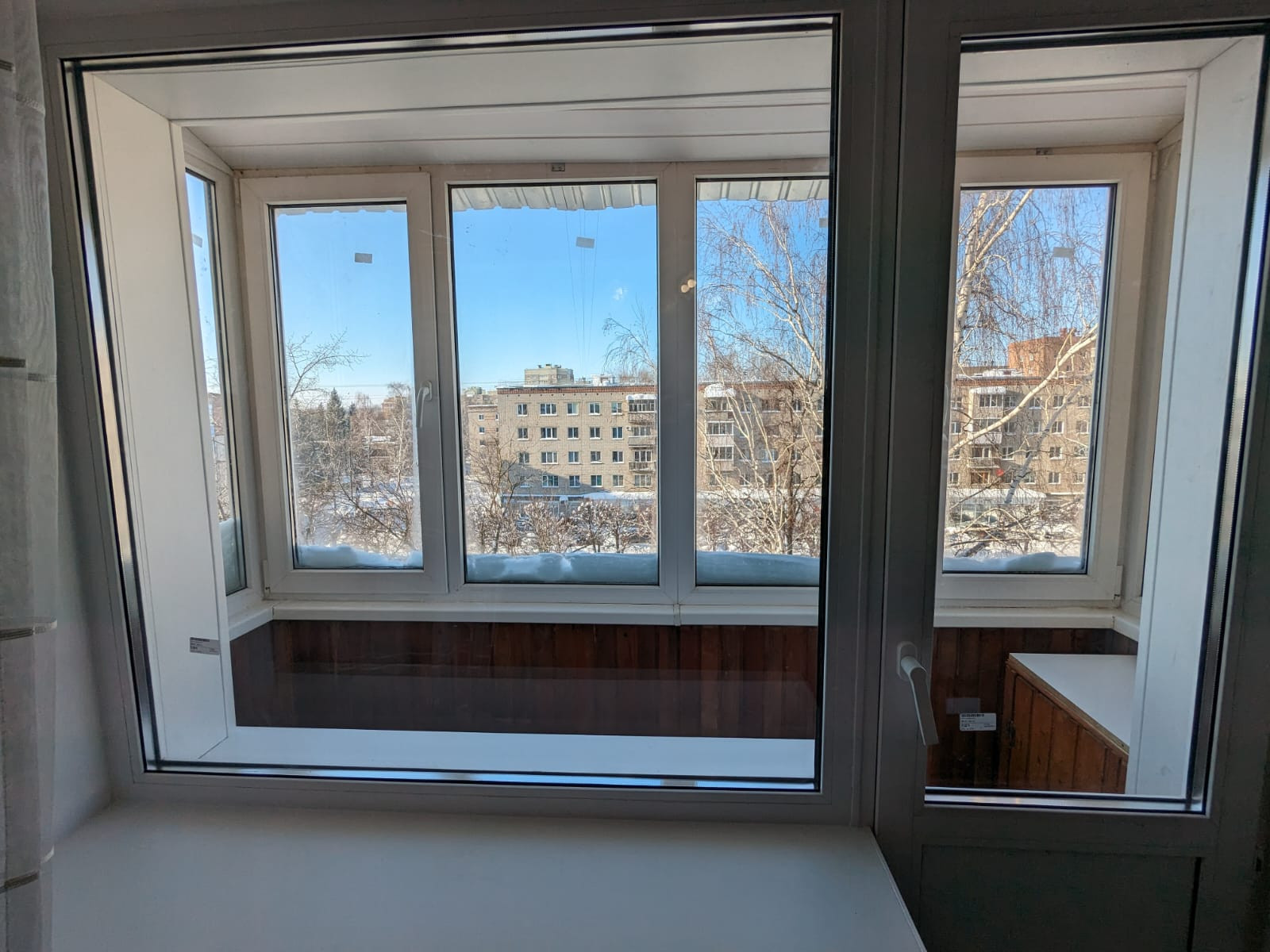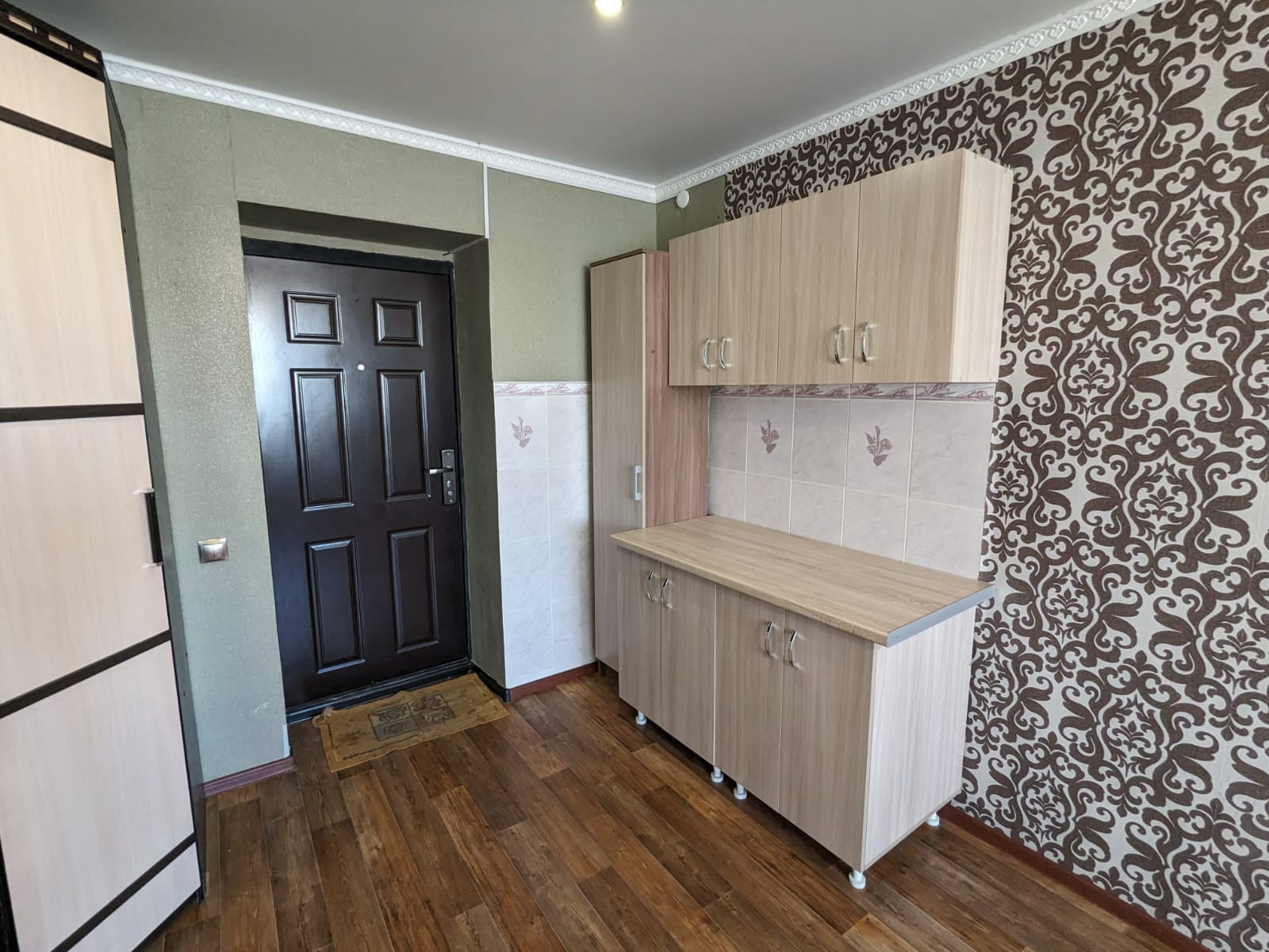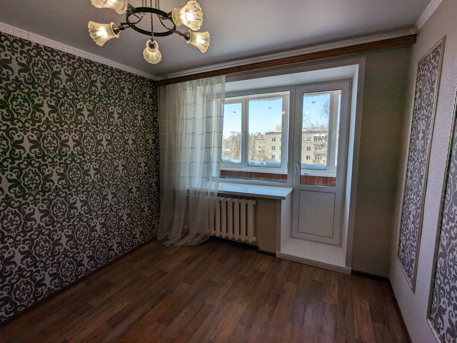 Свежий ремонт окно пластиковое с большим подоконником, балкон застеклён и обшит, натяжной потолок, на полу линолеум. Кухонный гарнитур, люстру и шкаф оставляем. Удобное расположение, остановка в 3х минутах, рядом новый магазин "Смарт", торговый комплекс Мега Молл, поликлиника и стоматология, школа и детский сад. Без долгов и обременений. Собственник.