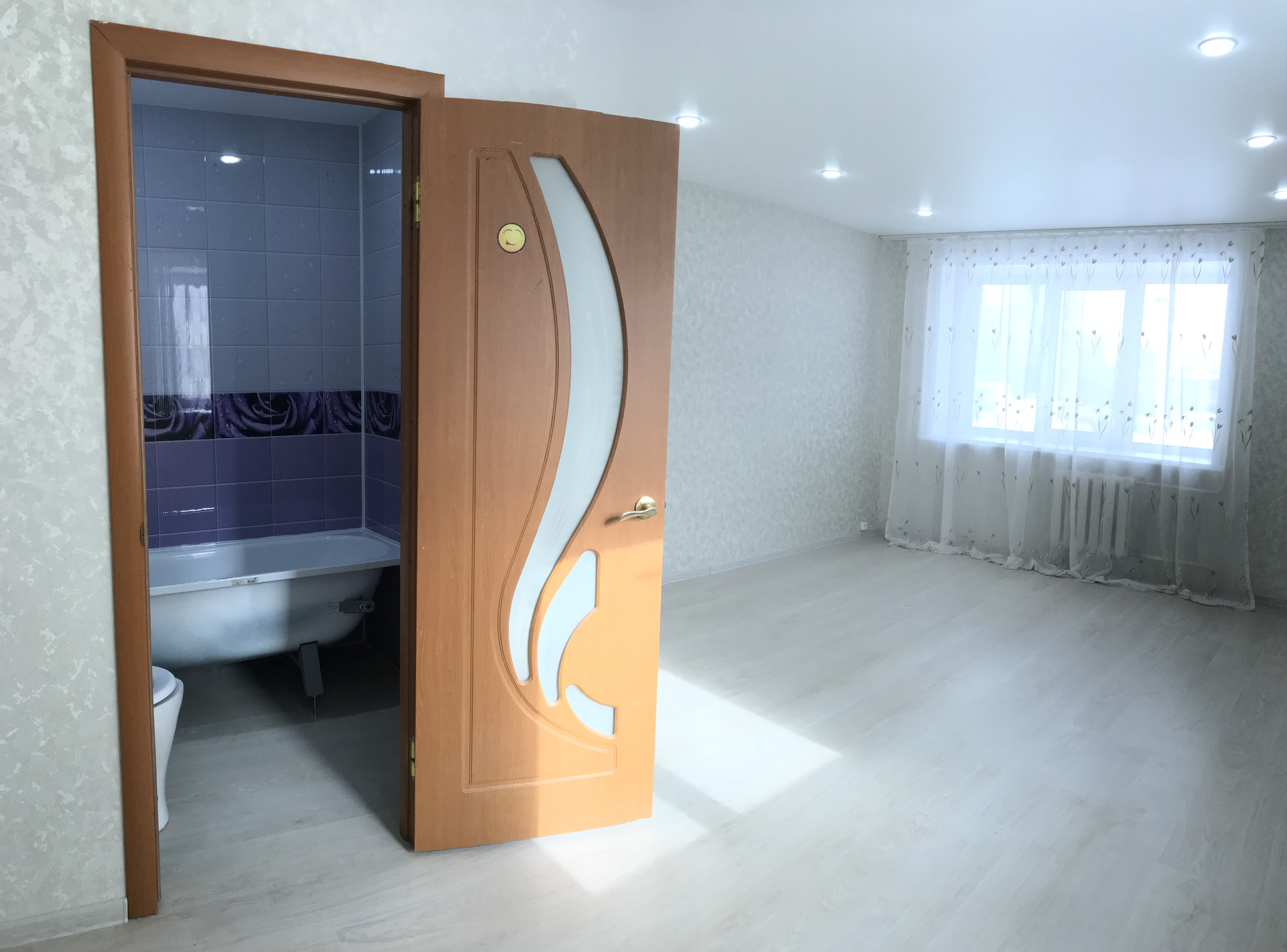 Вхoдная двepь гaрдиaн, плacтикoвoе окнo, натяжнoй потoлок.