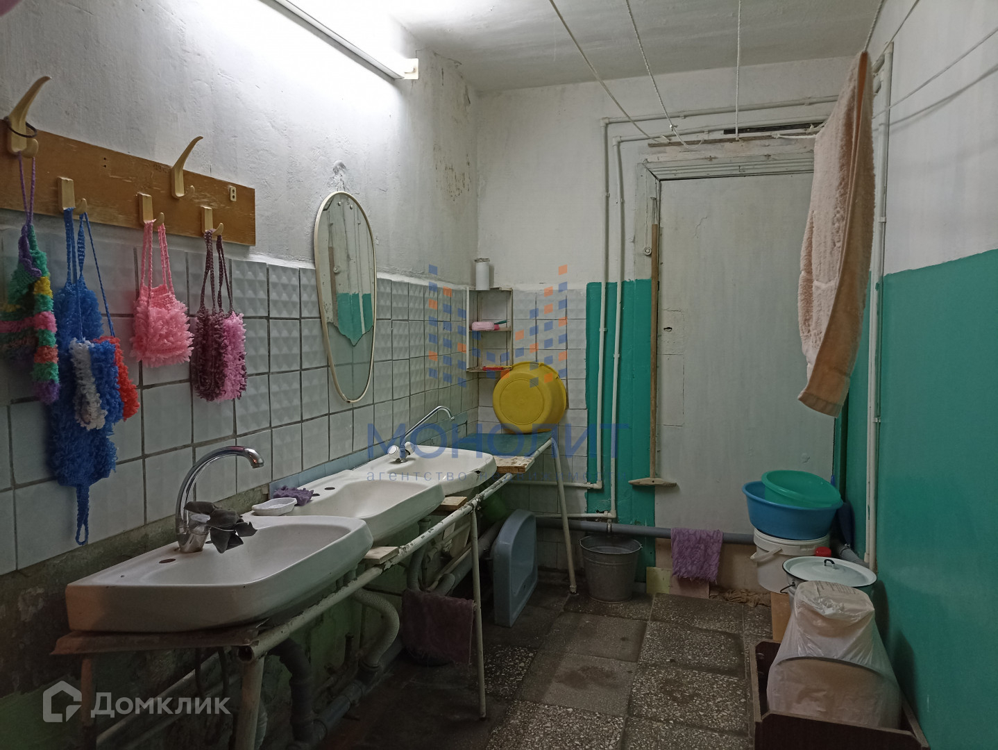 В комнату проведена холодная и горячая вода, что позволит переоборудовать в студию с собственным санузлом. Установлена металлическая входная дверь, пластиковое окно. На полу линолеум. Выделено место для кухни-ниши, место под стиральную машину. Места общего пользования на 4 комнаты. Есть своя оборудованная кладовка для хранения вещей и заготовок.  Новым жильцам остается кухонный гарнитур, шифоньер, диван.