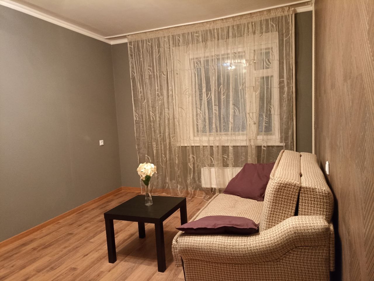 В комнате выполнен качественный ремонт из современных материалов. Выравнены стены, залит пол, заменена электропроводка, восстановлен и утеплен оконный блок. Потолок покрашен экологически чистой краской, стены оклеены коллекционными обоями, на полу ламинат 33 класса,  новая входная дверь.