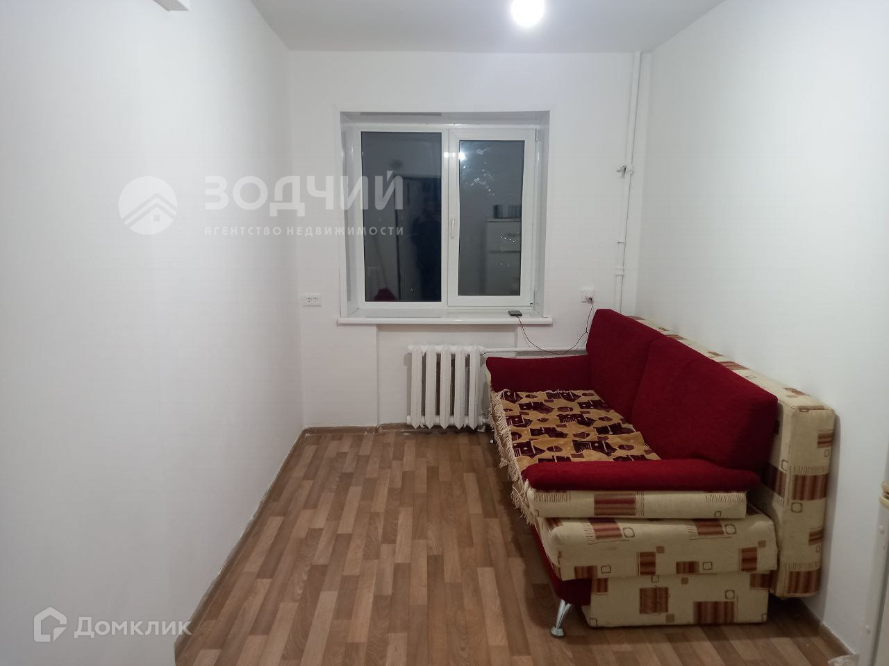 Комната в хорошем состоянии. Окно пластиковое. На полу линолеум. Есть шкаф, диван. Стиральная машина в моечном отделении остаётся новым владельцам. Соседи — все приличные люди.