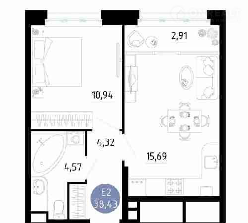 Общая площадь 38.4 м2