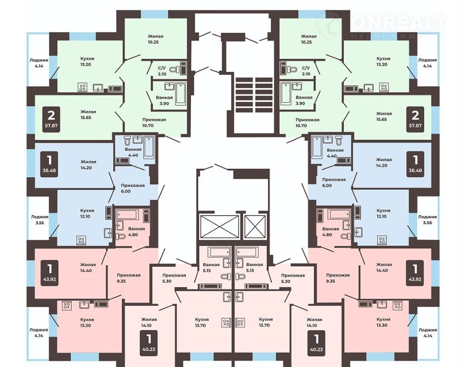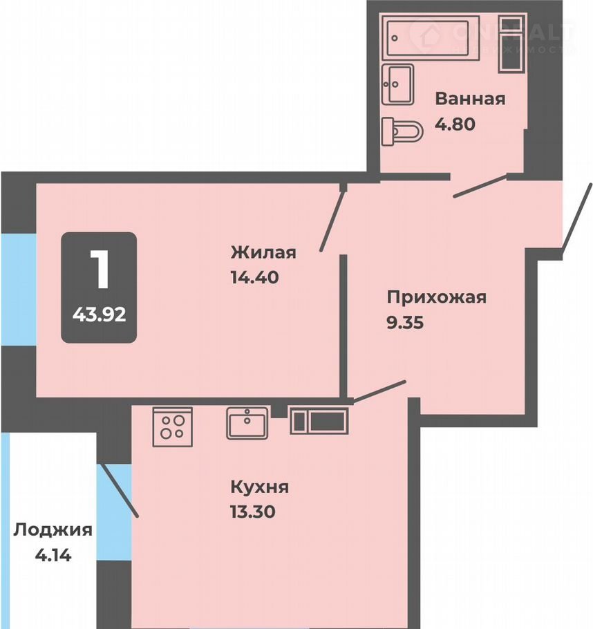 Общая площадь 43.9 м2