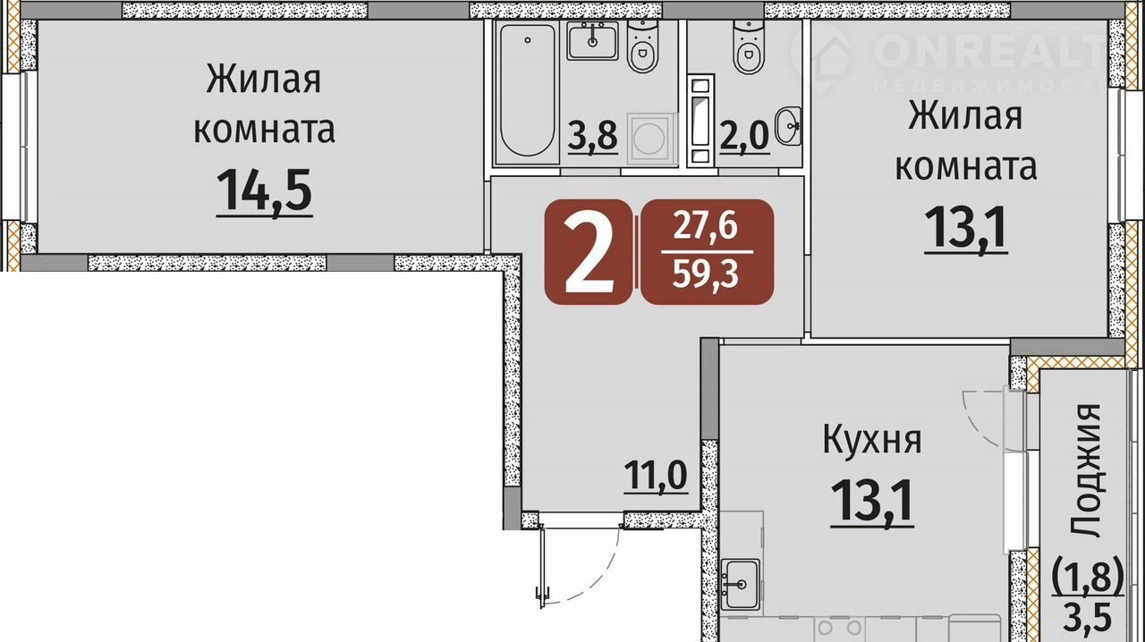 Общая площадь 59.3 м2