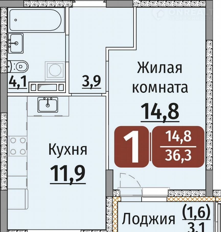 Балкон, лоджия 1 лоджия
