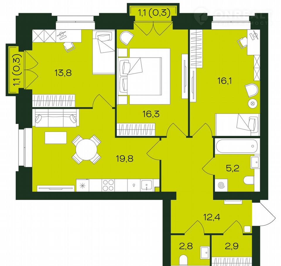 Общая площадь 90 м2