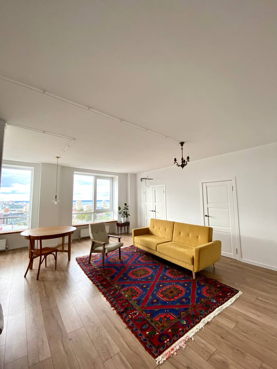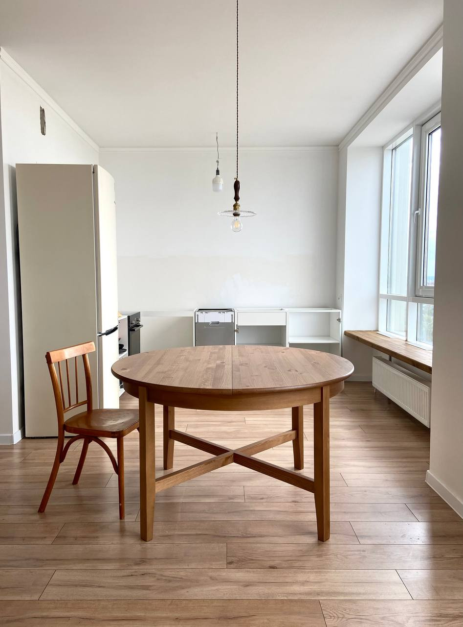 Новый ремонт, 2 спальни и большая кухня-гостиная. Также лоджия с тёплыми полами, где можно организовать себе рабочее пространство.