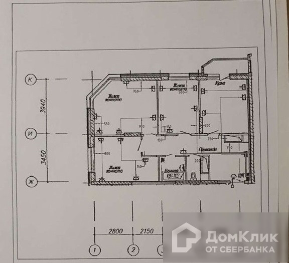 3 комнатная квартира с черновой отделкой , автономное отопление .