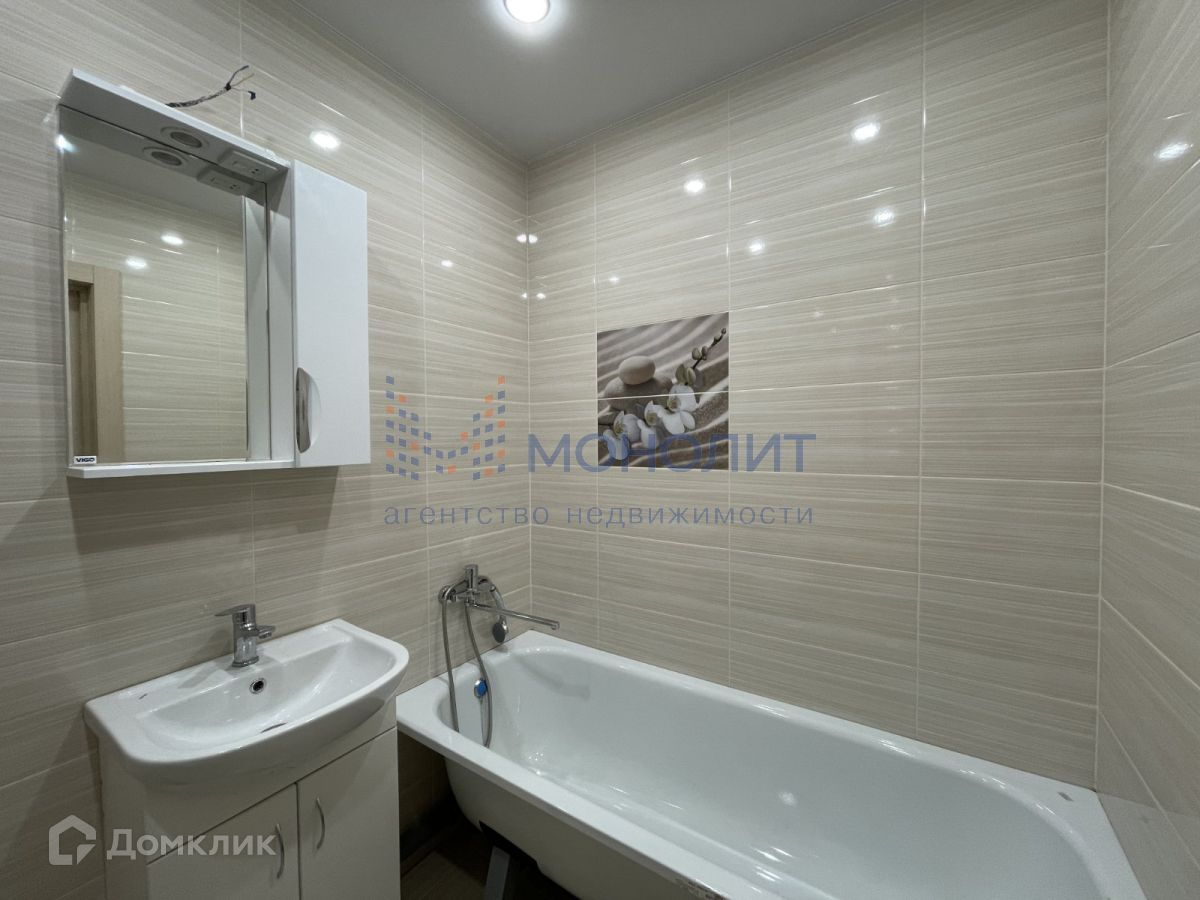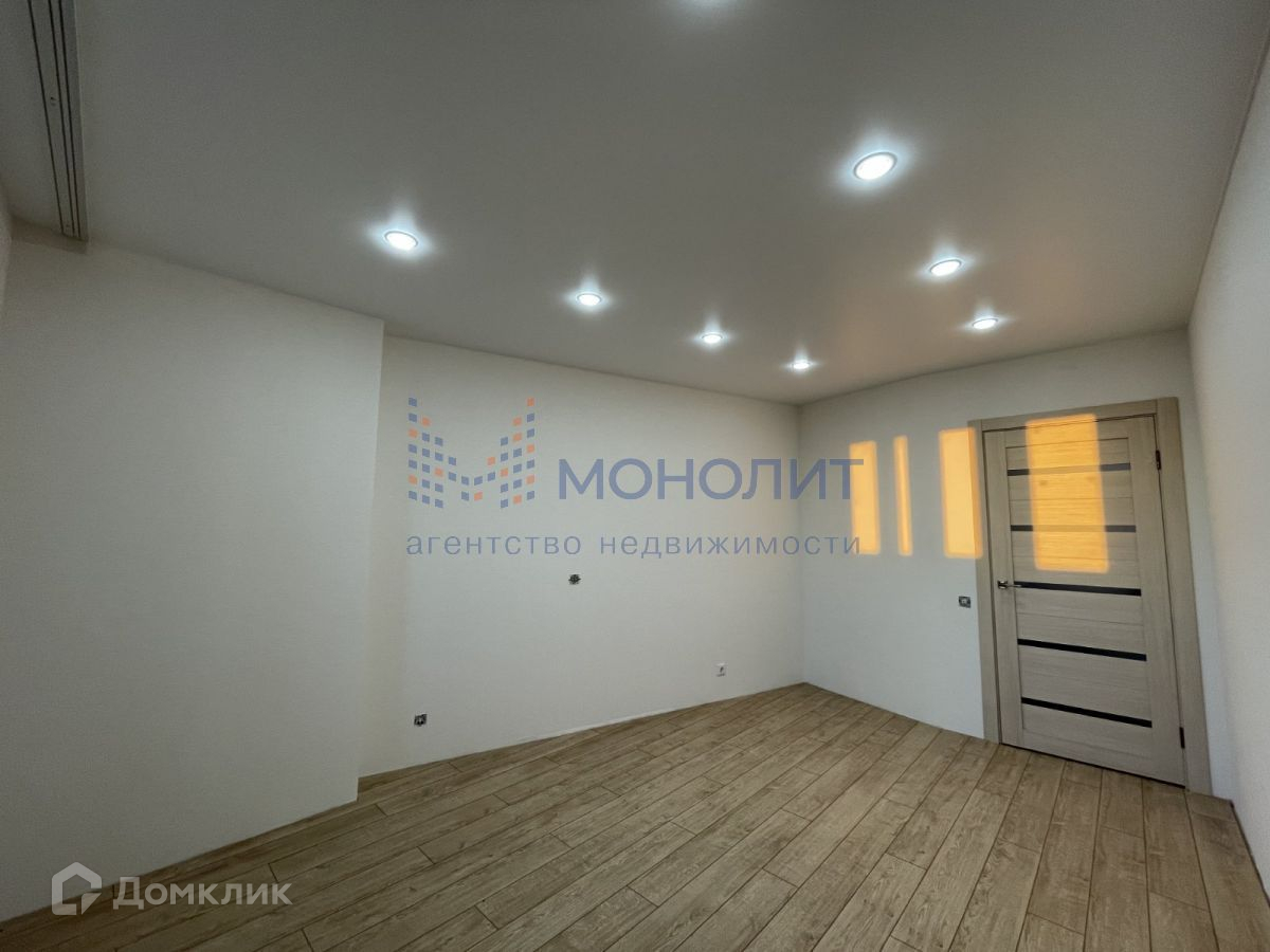 В квартире никто не проживал, натяжные потолки, ламинат в гостиной, керамогранит на кухне и в прихожей, современный кафель в ванной комнате. Точечные светильники.