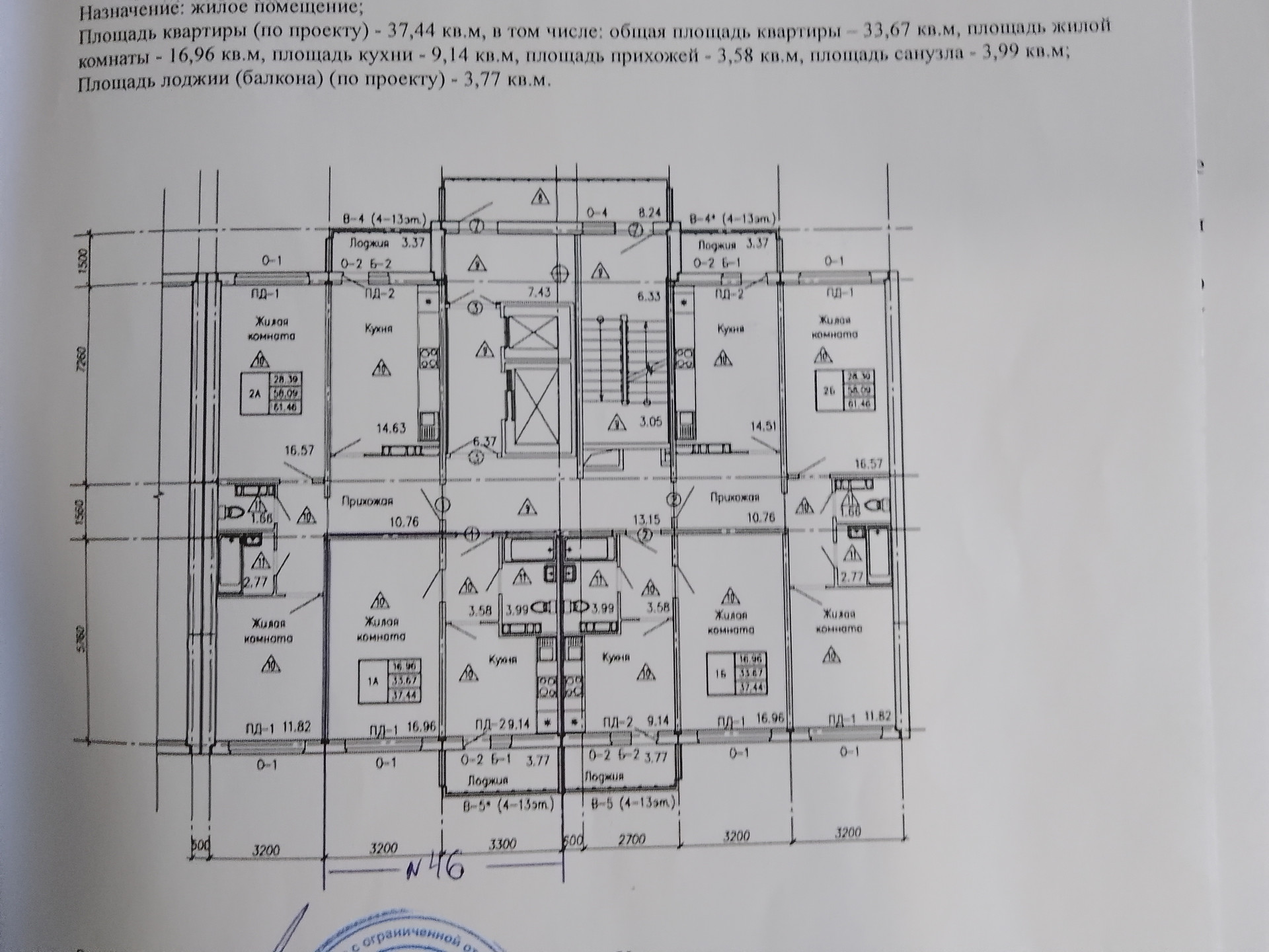 Общая площадь 37.44 м2