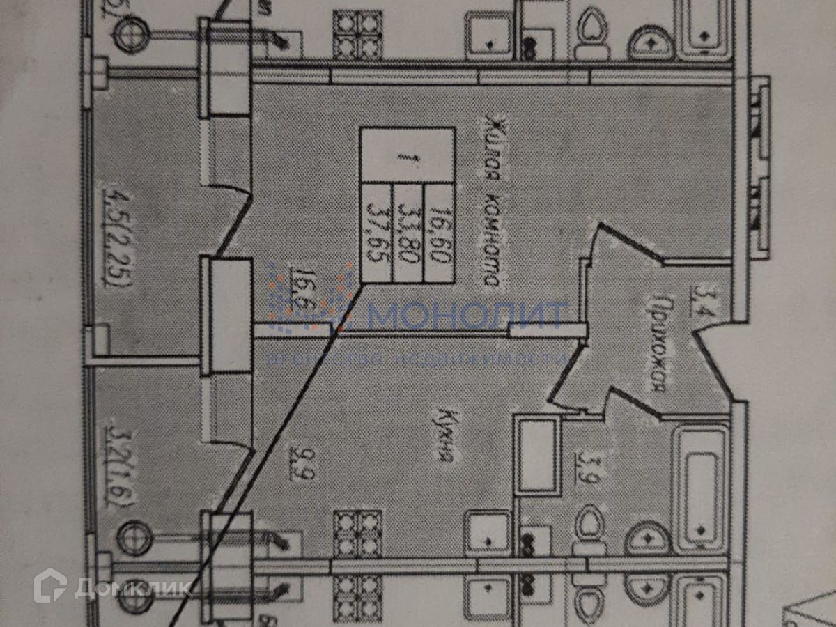 Общая площадь 37.7 м2