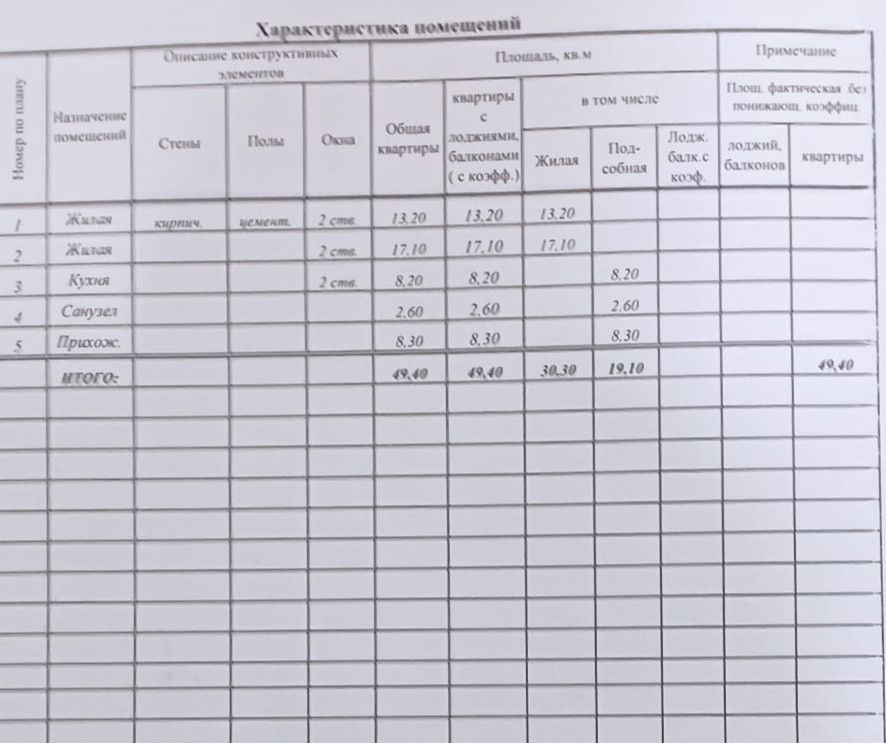 Общая площадь 49.4 м2
