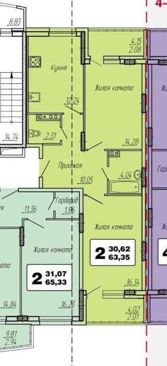 Общая площадь 63.35 м2