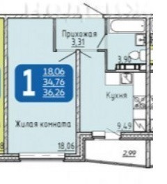 Общая площадь 36 м2
