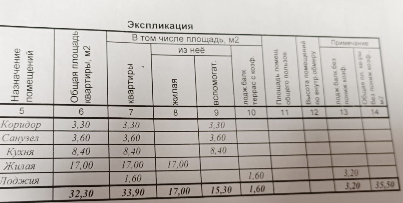 Общая площадь 35.5 м2