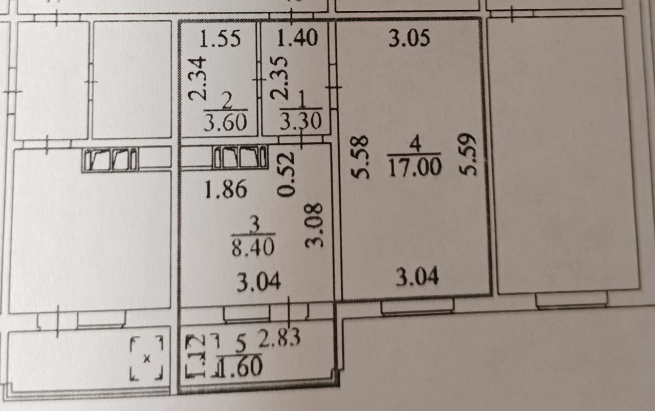 Жилая площадь 17 м2