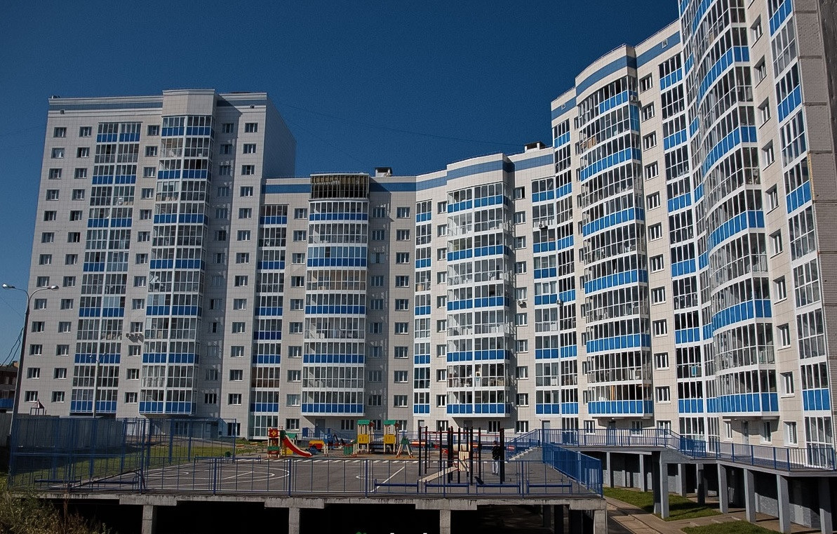 Современный микрорайон. Дом на стадии сдачи.