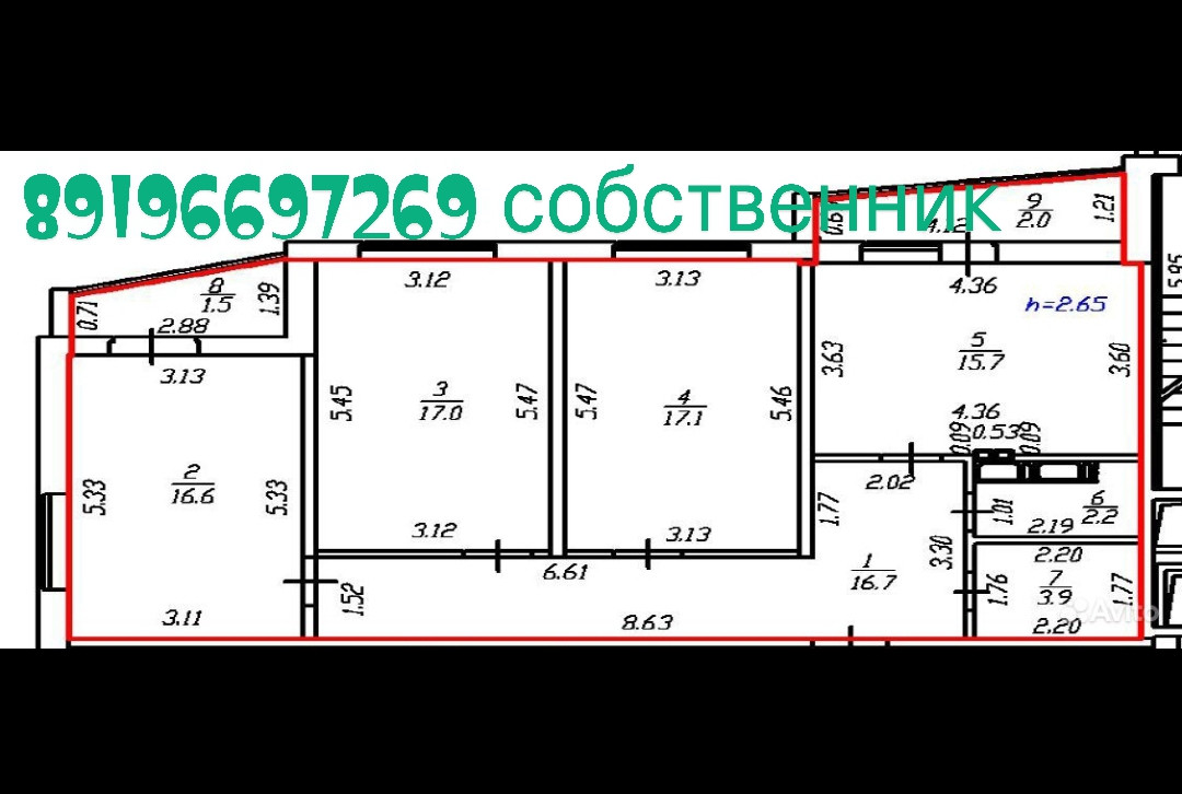 Высота потолков 2.7 м