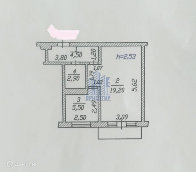 Жилая площадь 19.2 м2