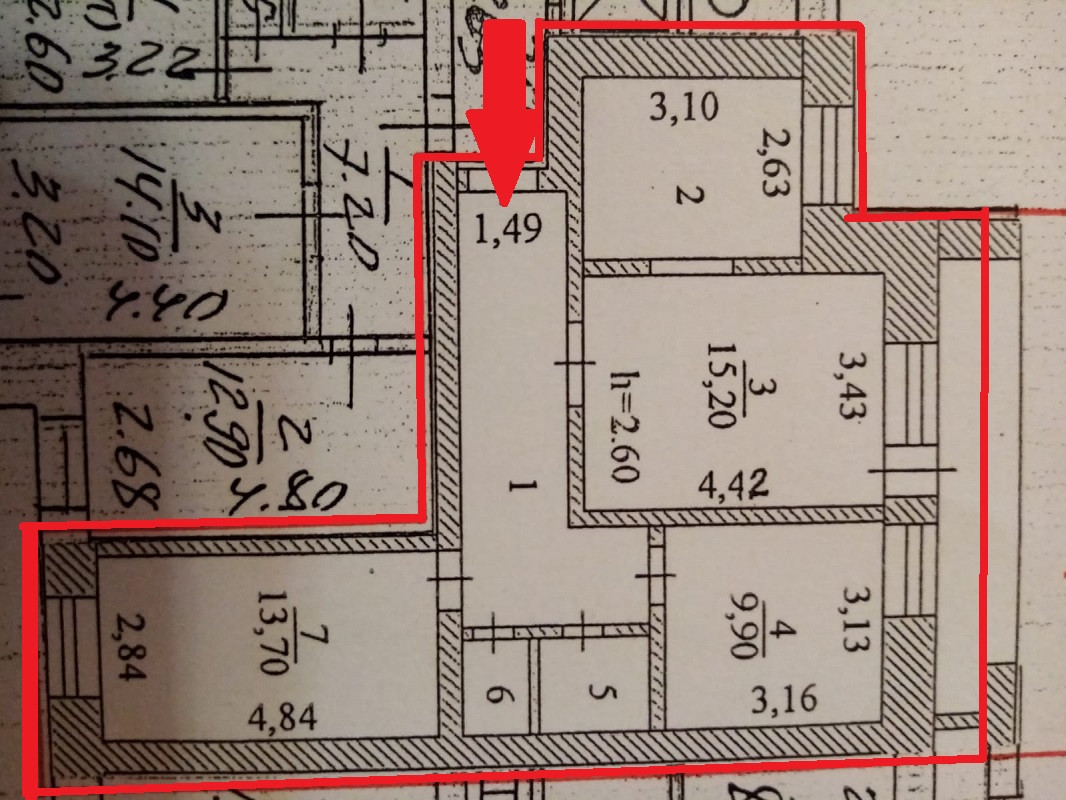 Высота потолков 2.6 м