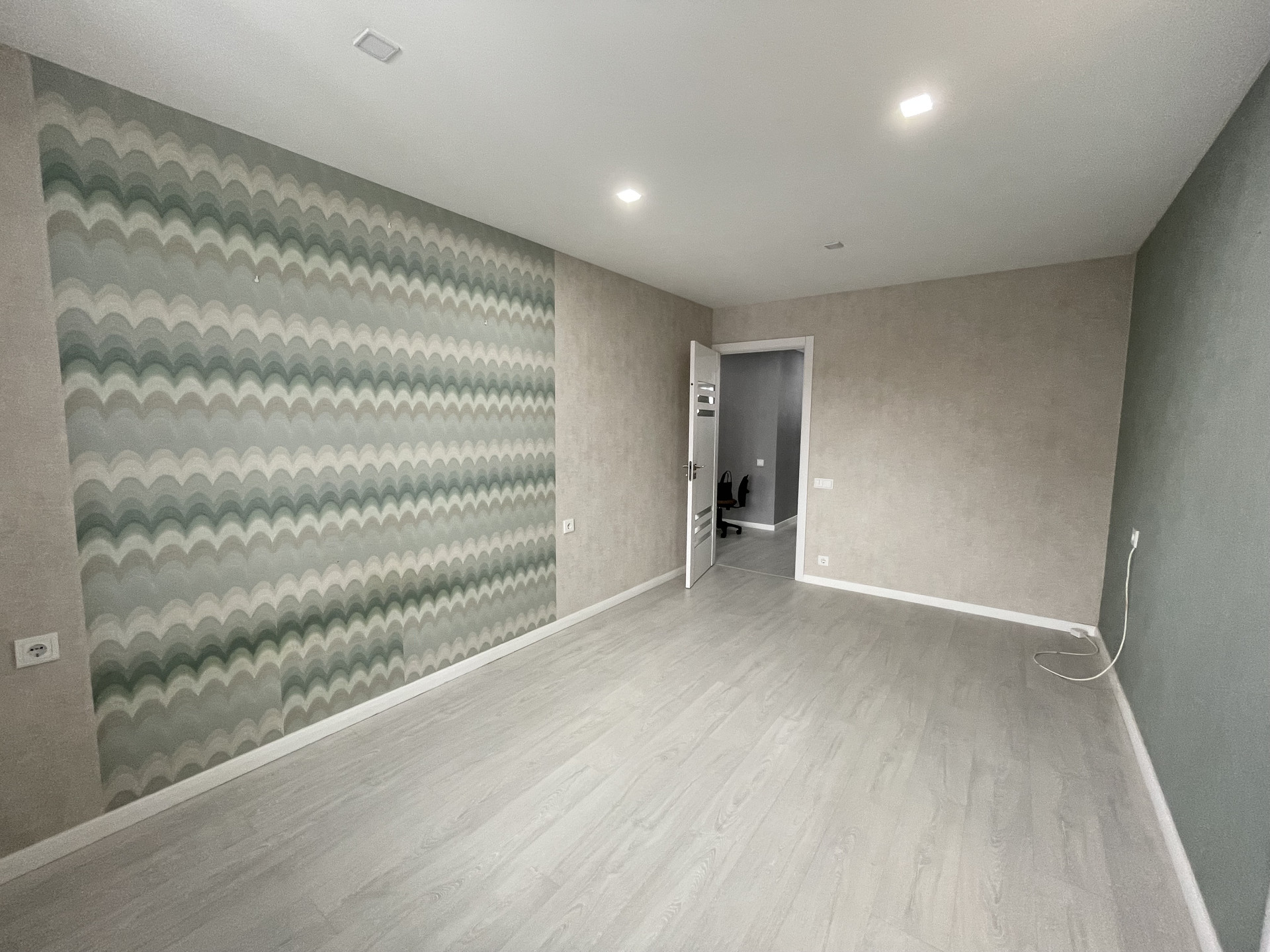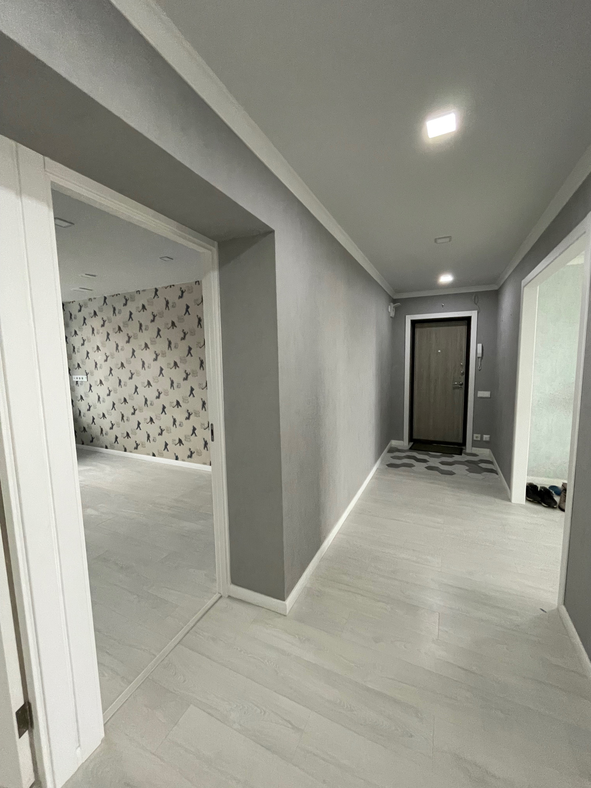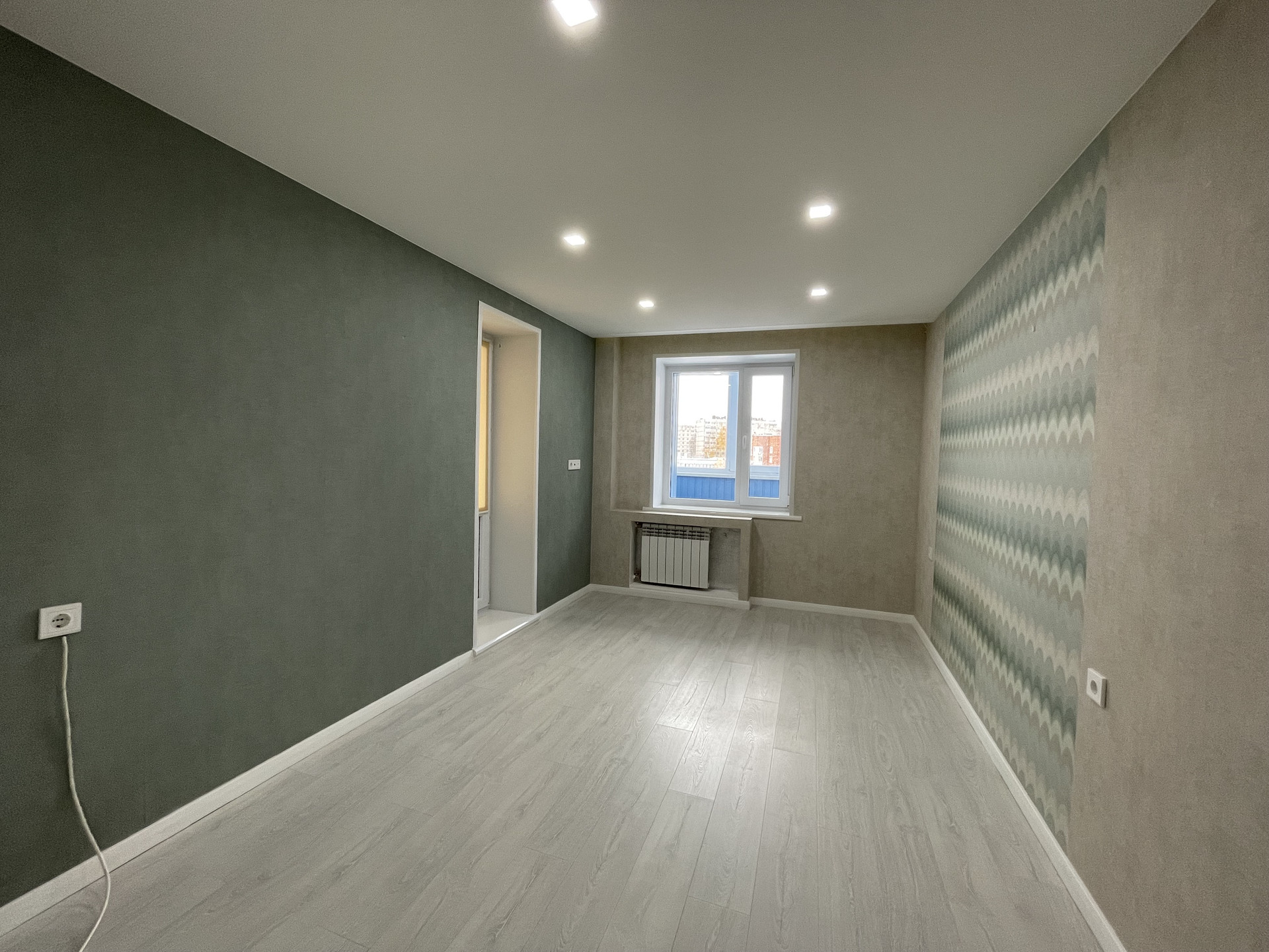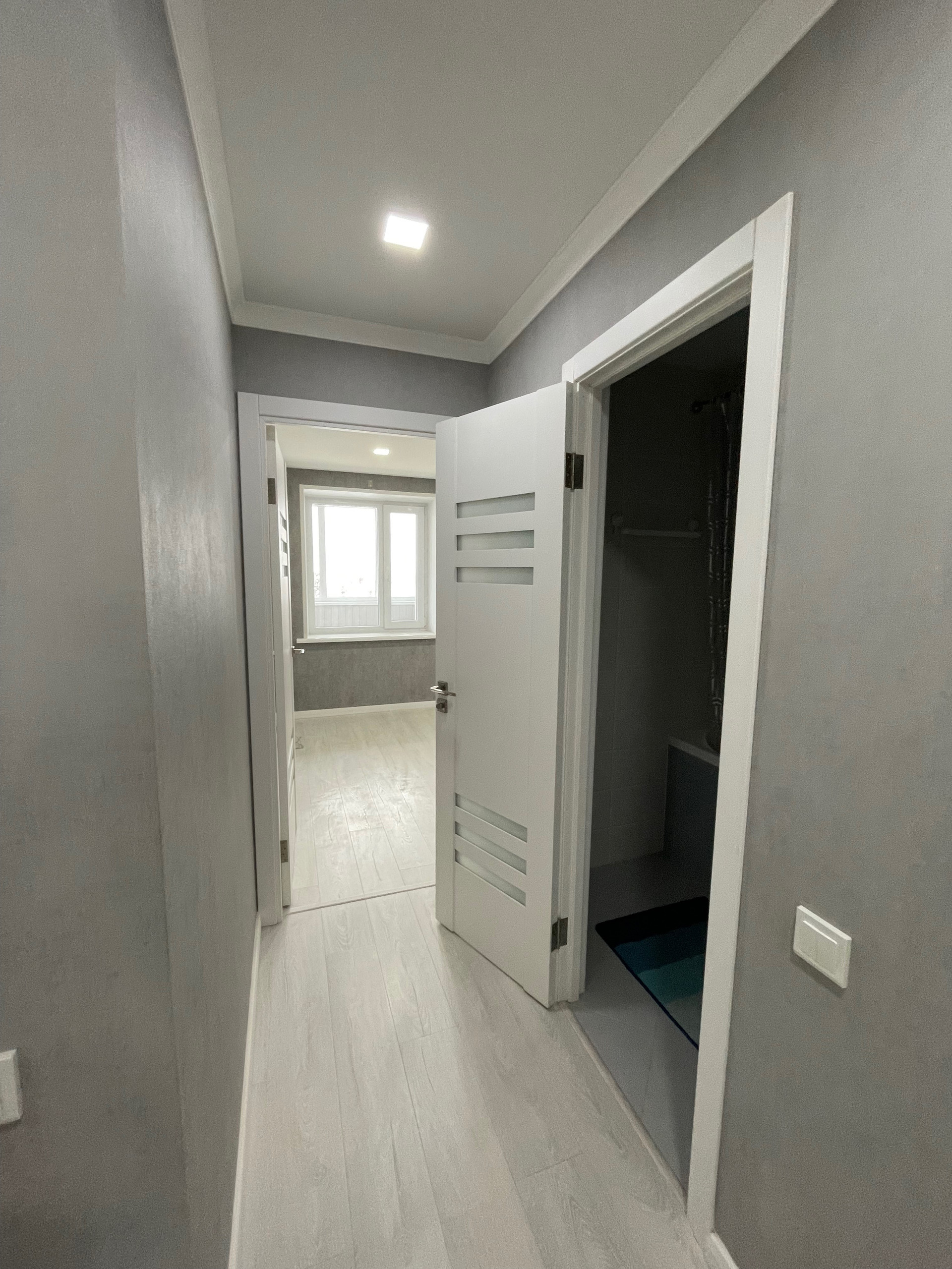 Отделка: обои Обоиград, стены выровненные, межкомнатные двери Geona. Окна —пластик, потолок натяжной, пол ламинат. На входе, на кухне, санузле и ванной плитка, теплый регулируемый пол.