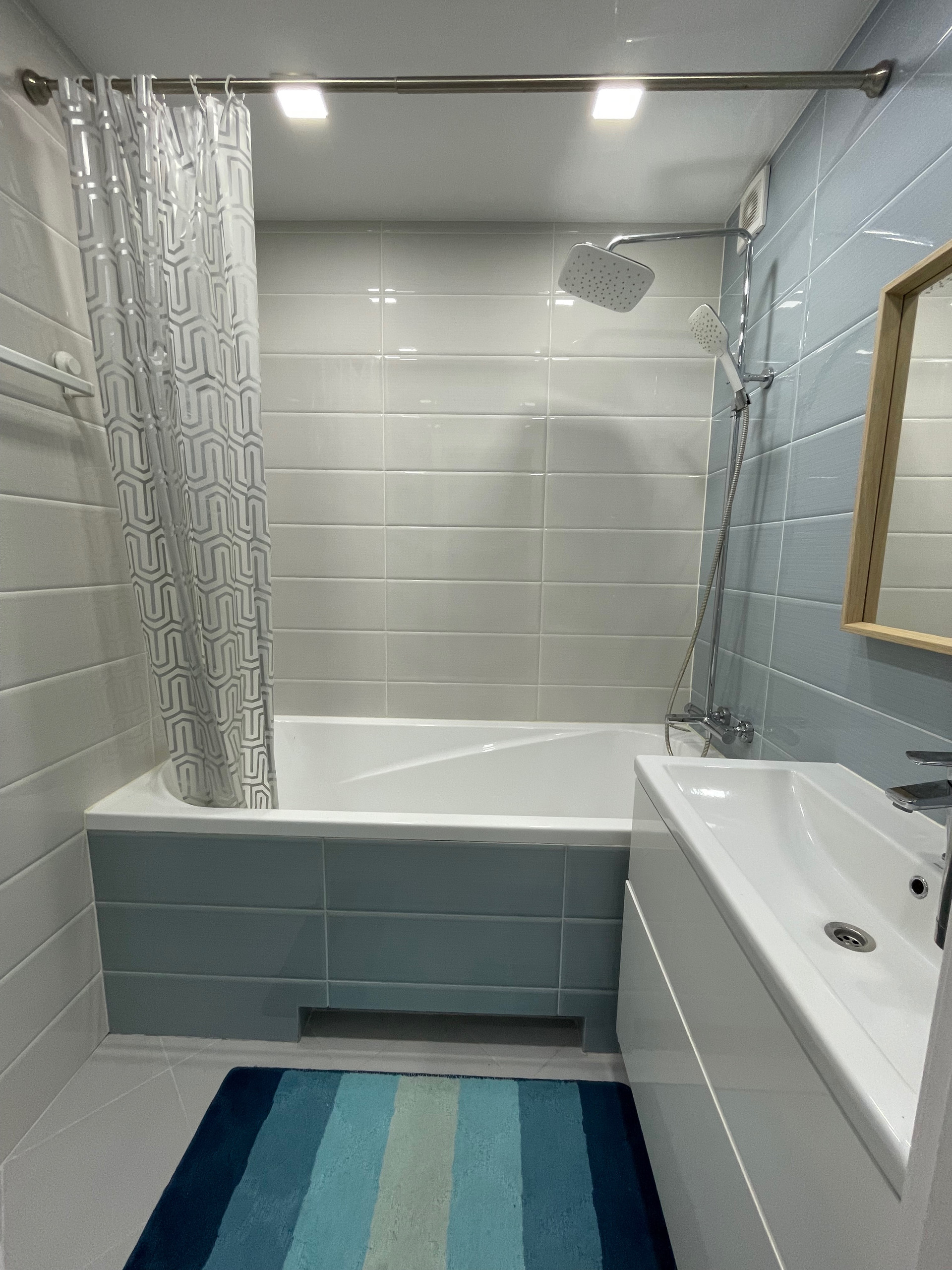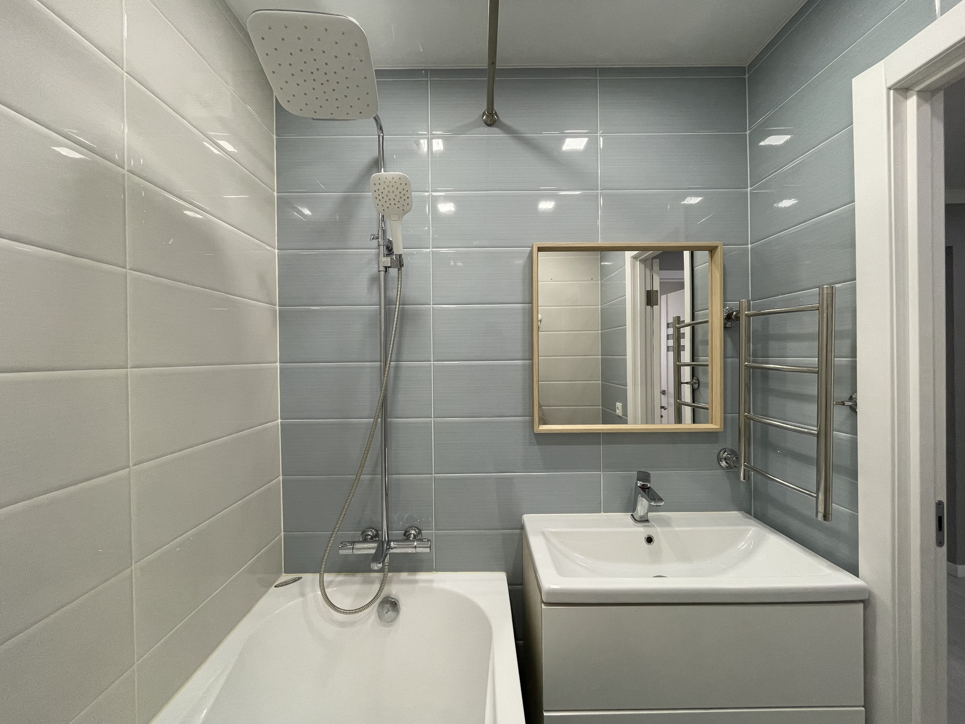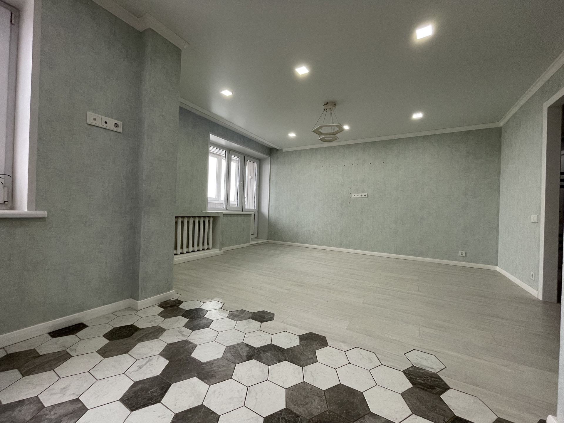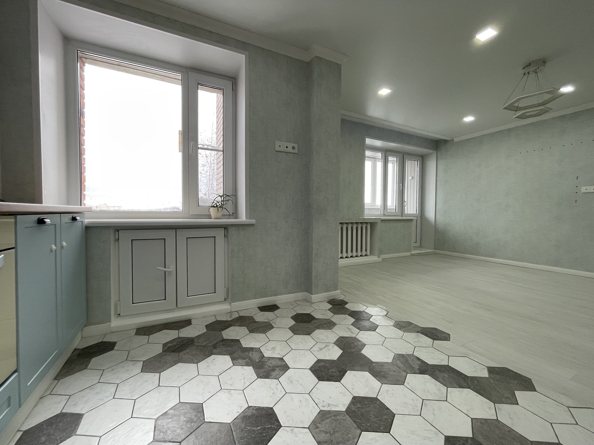 Отделка: обои Обоиград, стены выровненные, межкомнатные двери Geona. Окна —пластик, потолок натяжной, пол ламинат. На входе, на кухне, санузле и ванной плитка, теплый регулируемый пол.