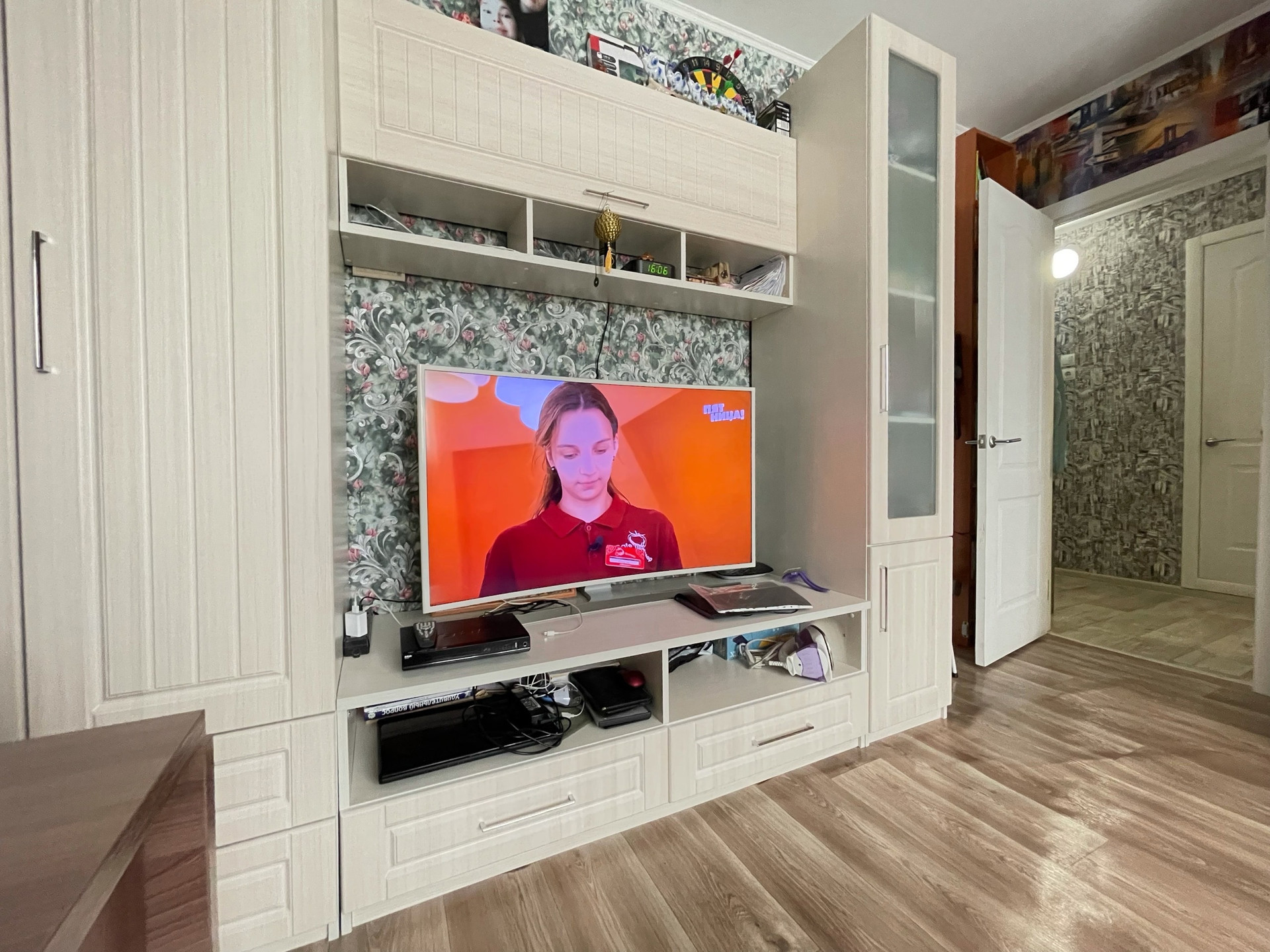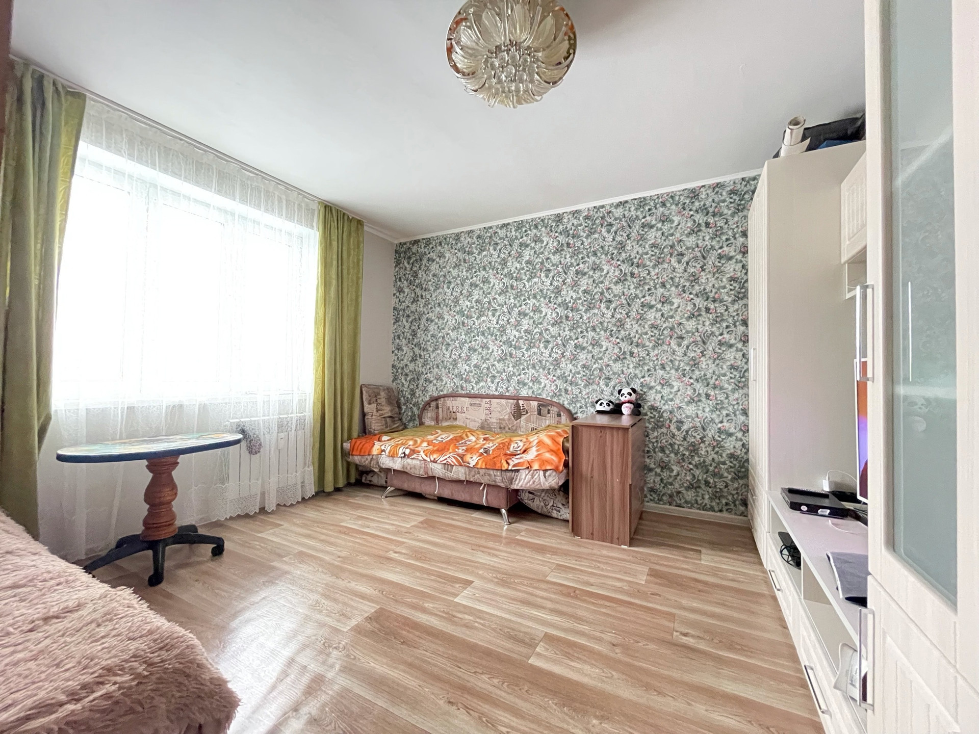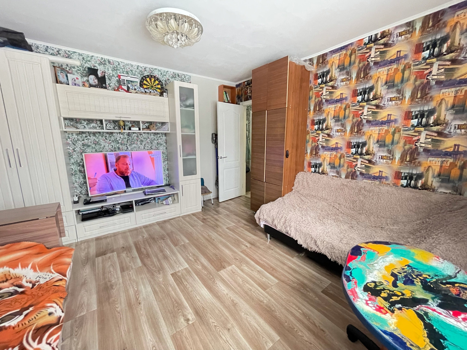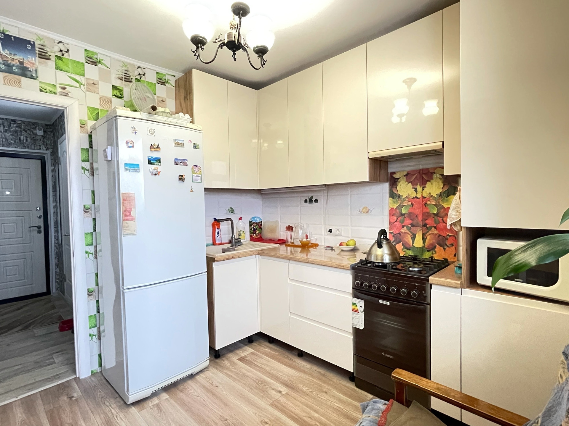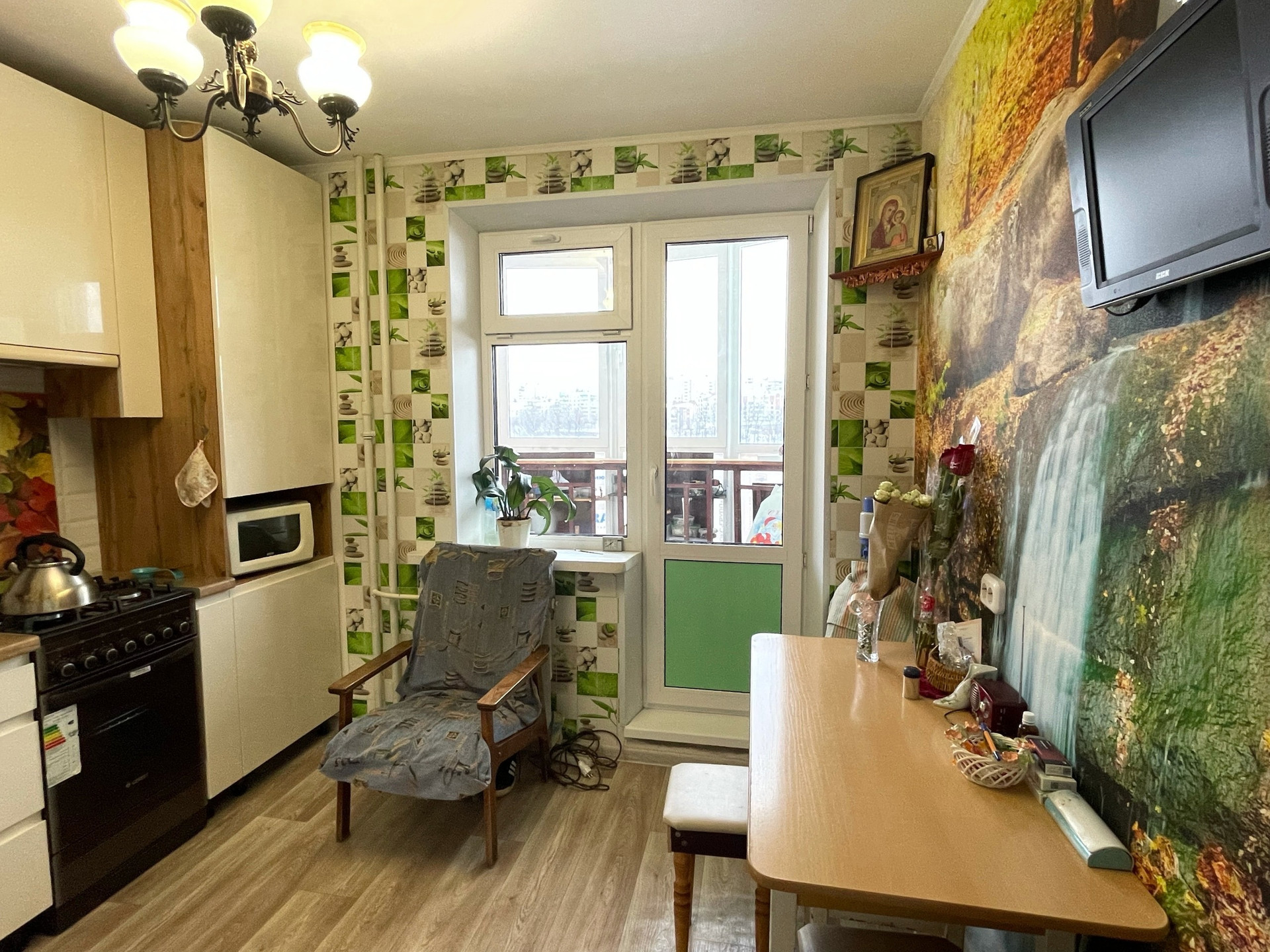 Квартира в аккуратном состоянии, с/у раздельный в современном кафеле, счетчики установлены, выход на балкон из кухни. Грузовой и пассажирский лифт. Из мебели остается современный кухонный гарнитур. Тихий район, порядочные соседи.