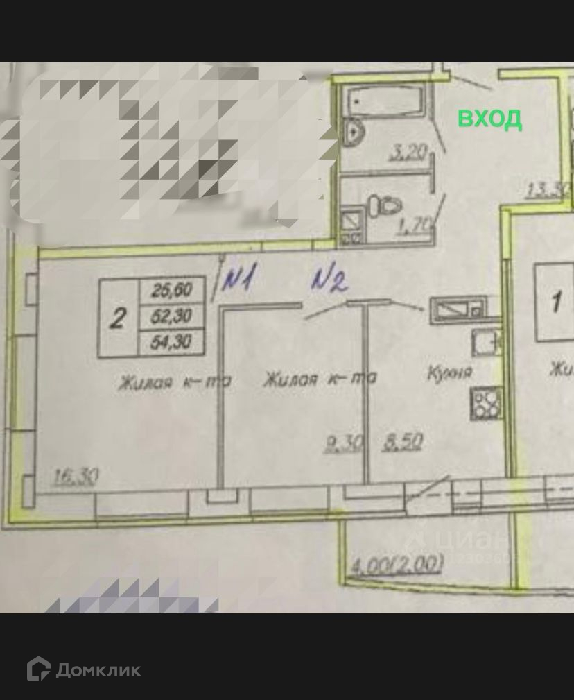 Общая площадь 55 м2