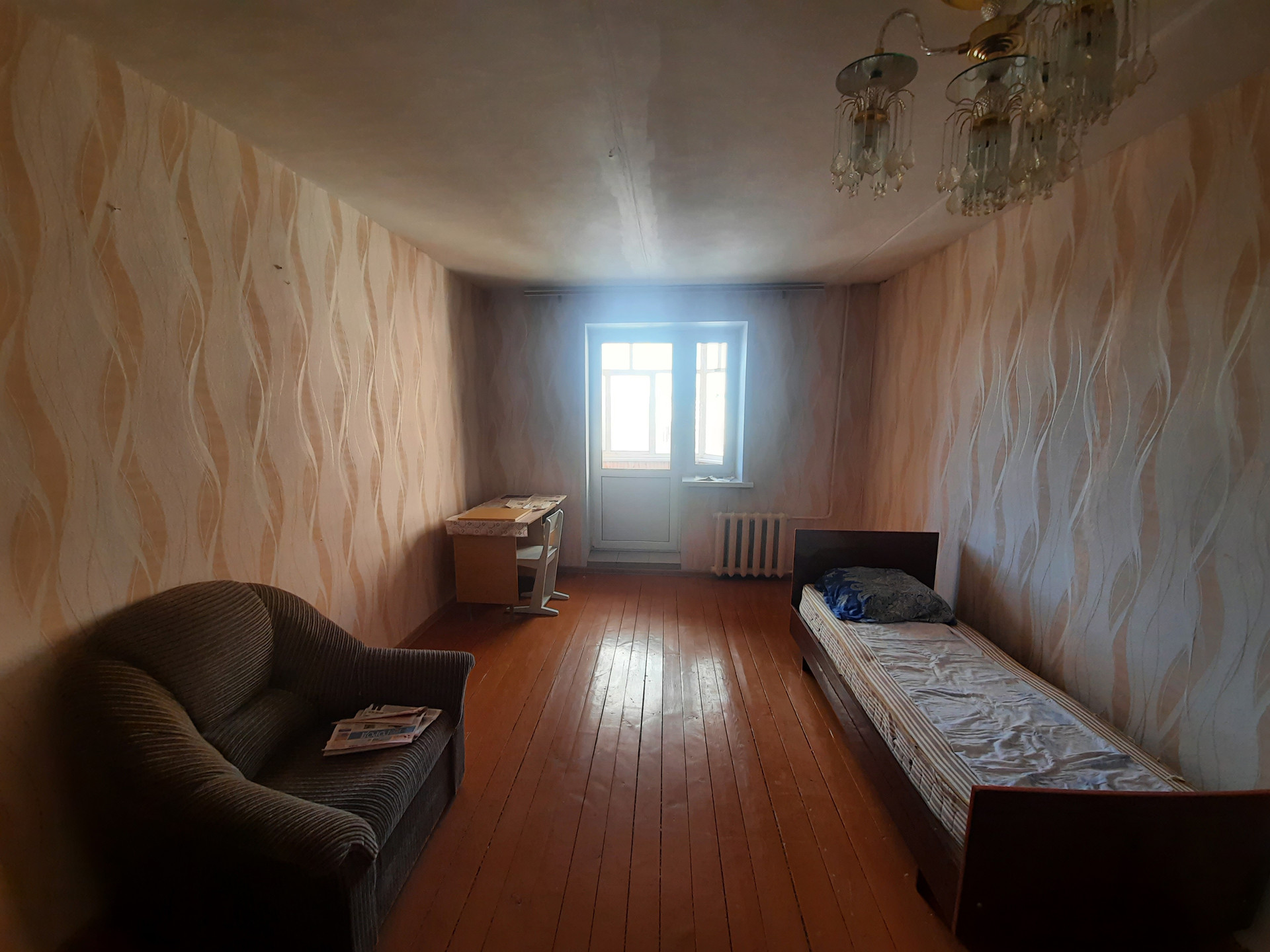 Огромный зал, который поделен перегородкой на две комнаты. В итоге, в квартире 5 раздельных жилых комнат.