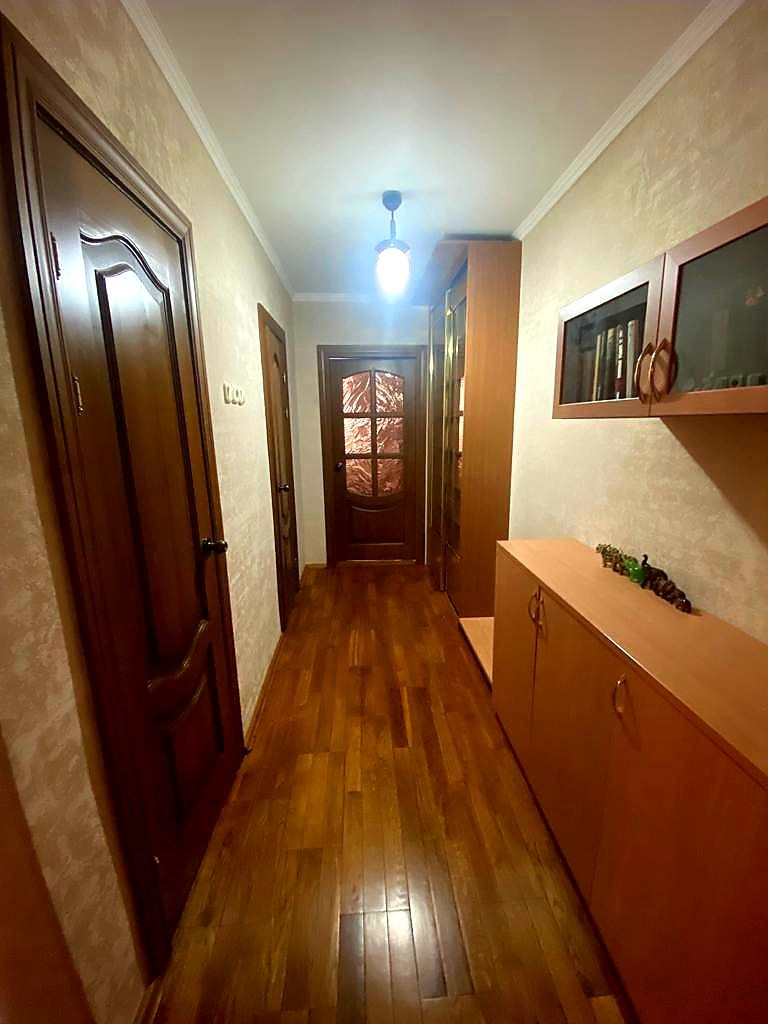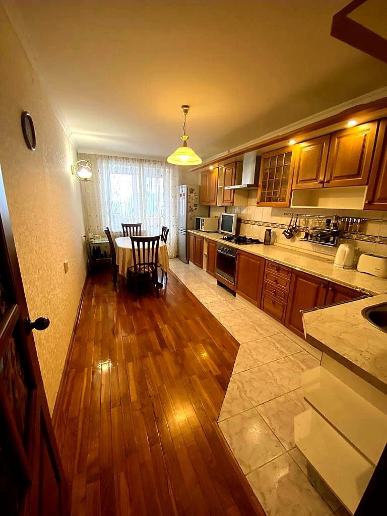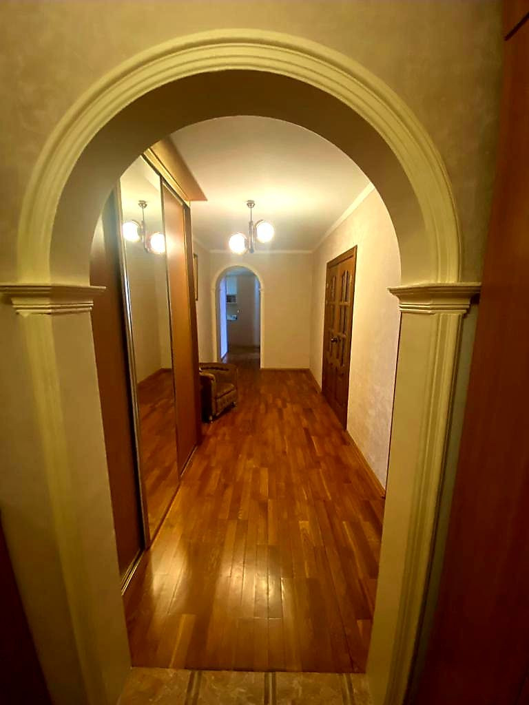 Планировка (распашонка) - просторная с изолированными комнатами: прихожая, гостиная (24,20 кв.м.) и две спальни (13,50 кв.м. и 14,10 кв.м.). Уютная кухня (14,60 кв.м.) с компактным кухонным гарнитуром оборудована необходимой техникой. Остекленный и уютный балкон с выходом из кухни и одной из спален. Дополнительным Бонусом в квартире имеется тамбур (3,20 кв.м.) с встроенными шкафами при входной двери, что собирают всю верхнюю одежду и обувь по сезону. Сигнализация.