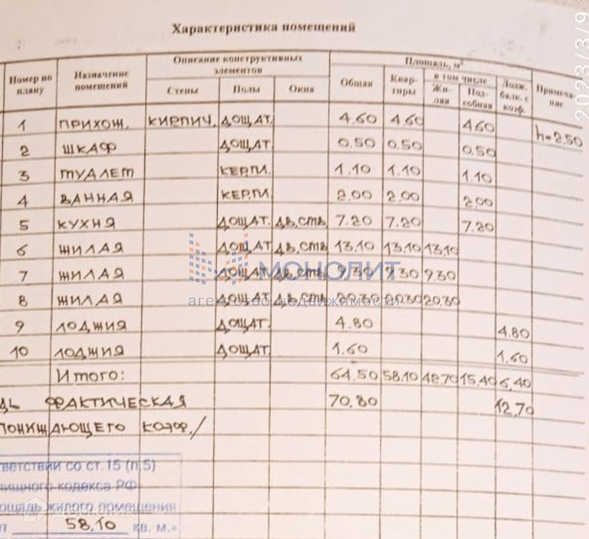 Общая площадь 70.8 м2