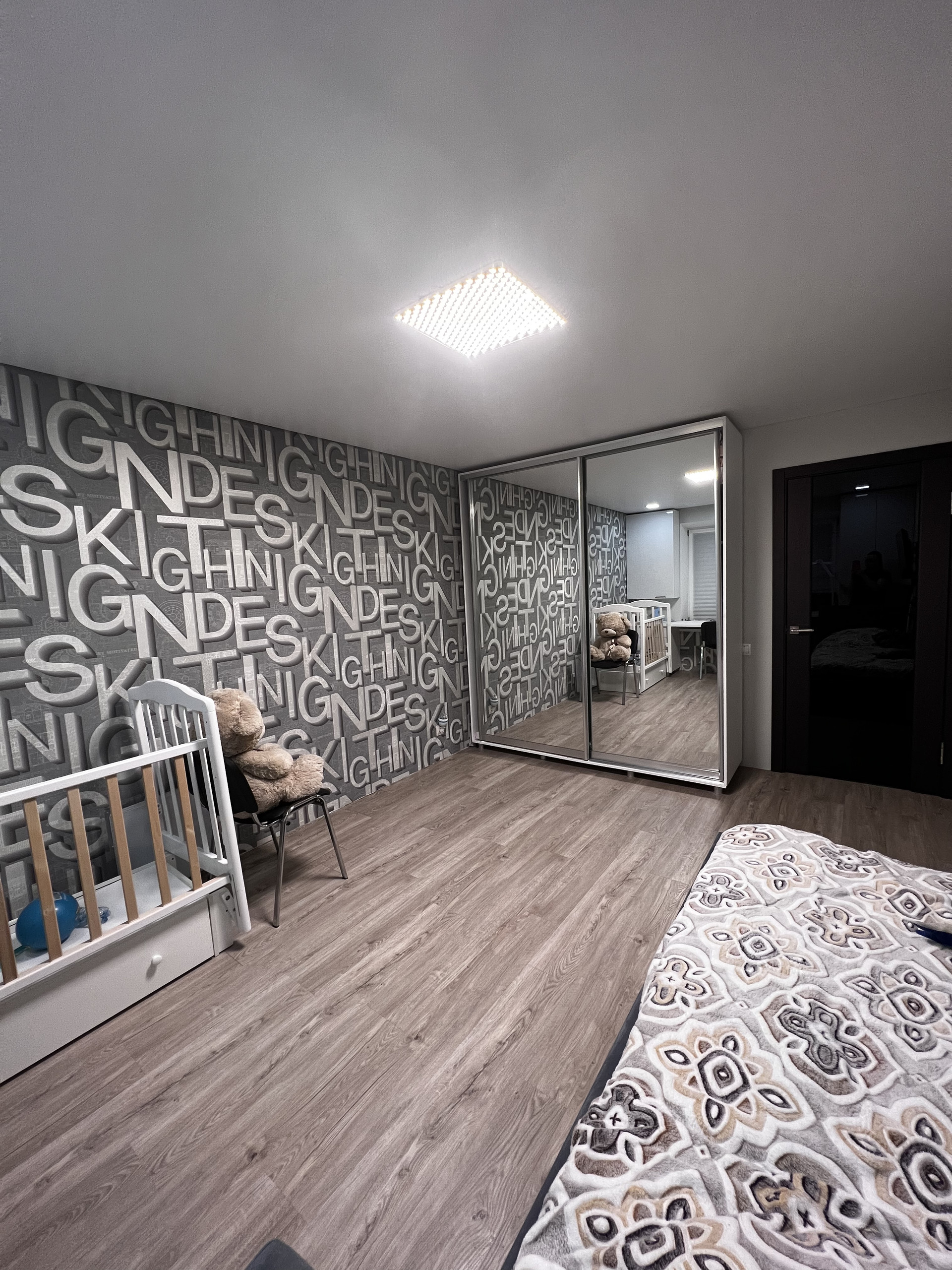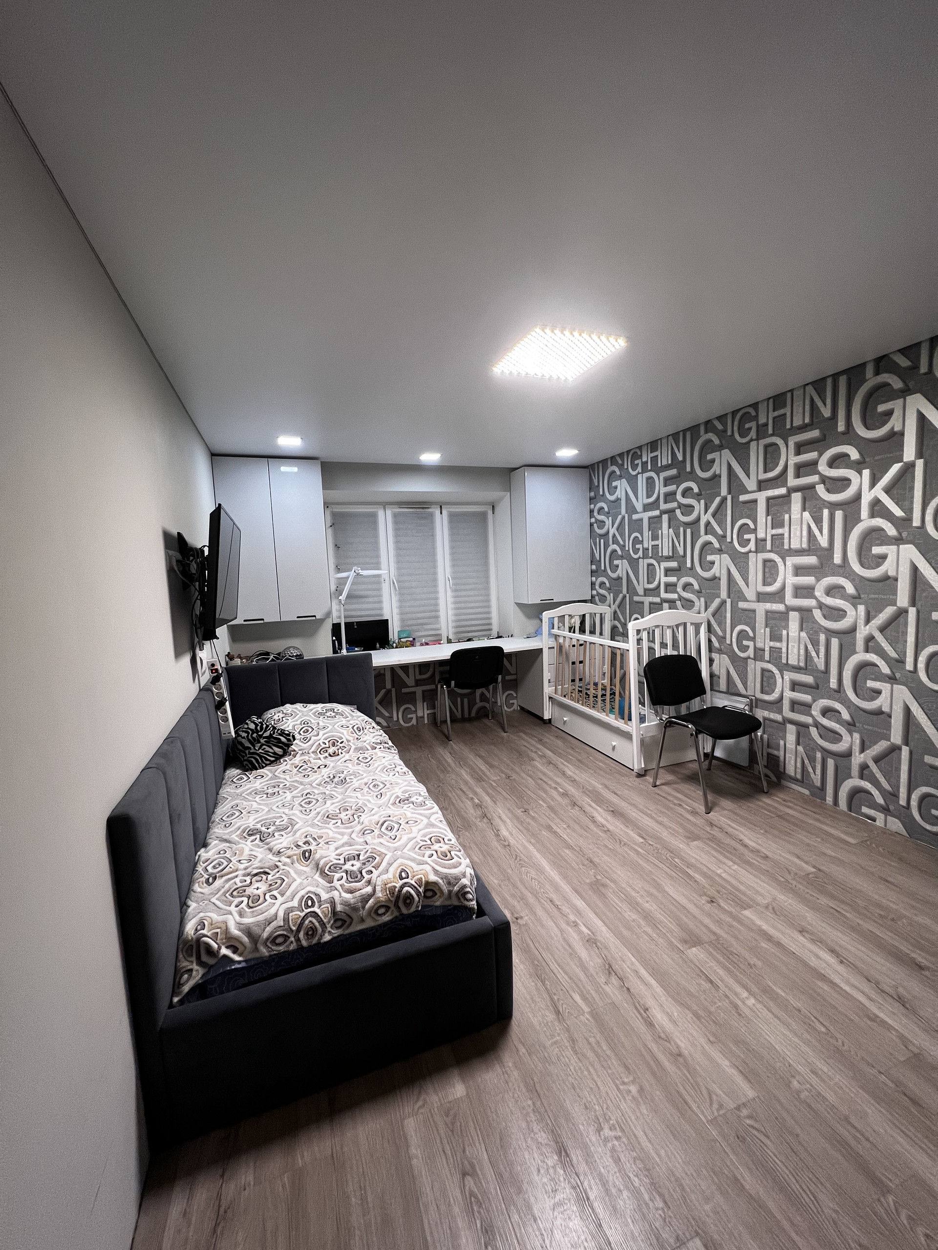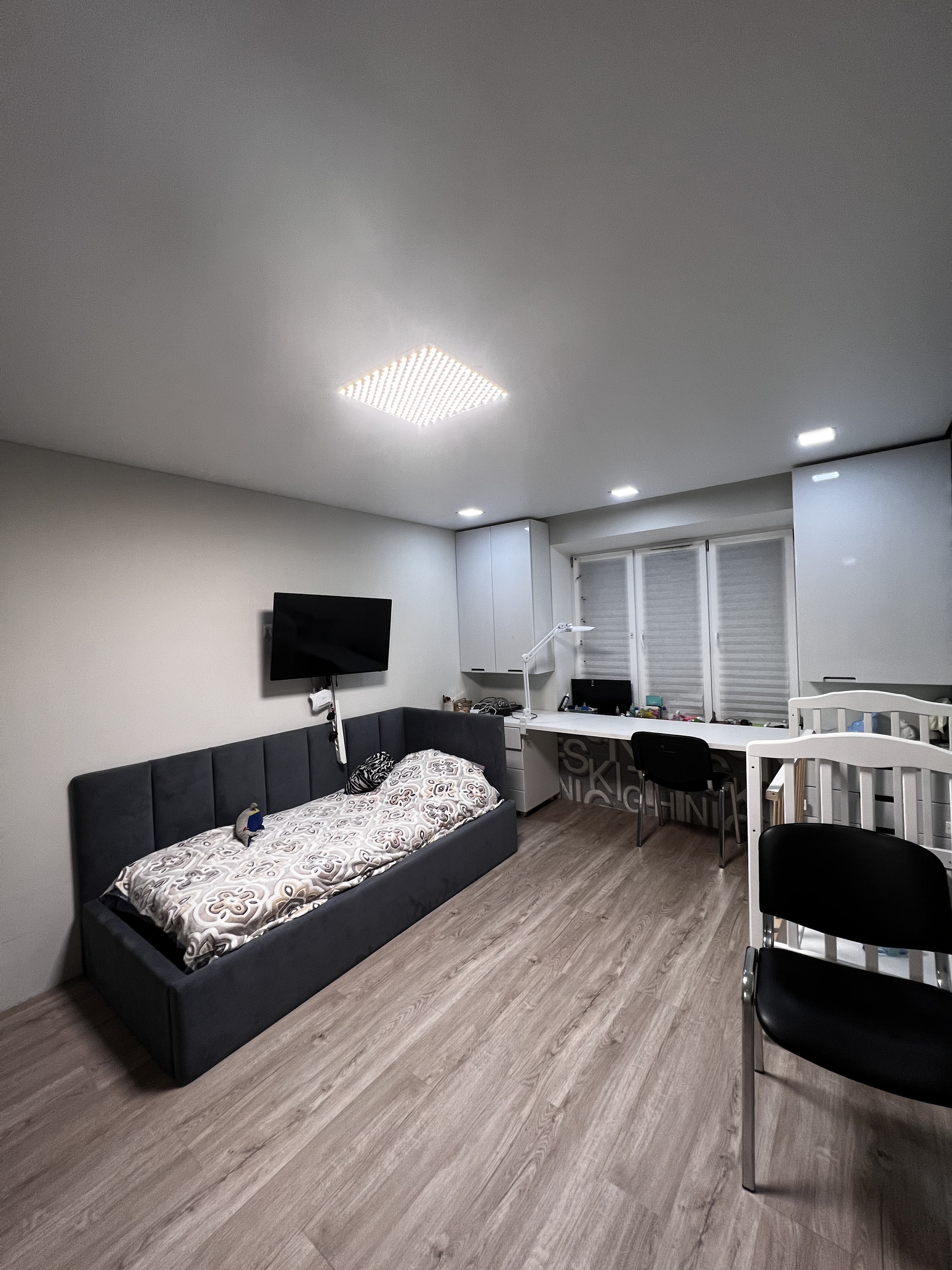 Оставляем встроенную кухню с фурнитурой Blum, большой шкаф купе в прихожей, мебель в детской комнате.