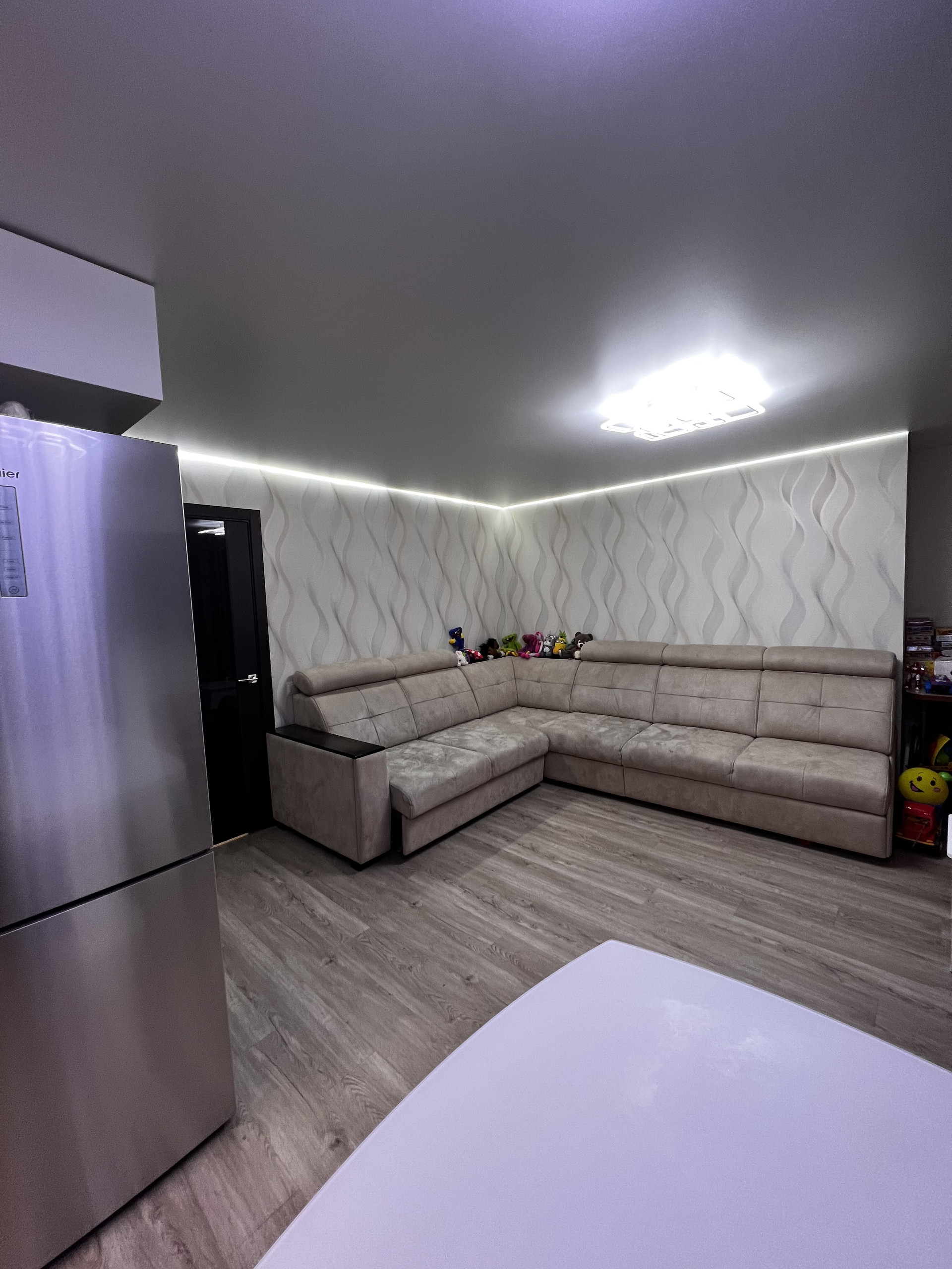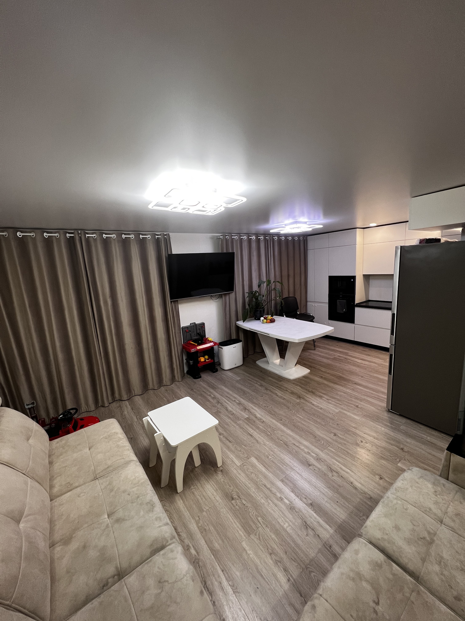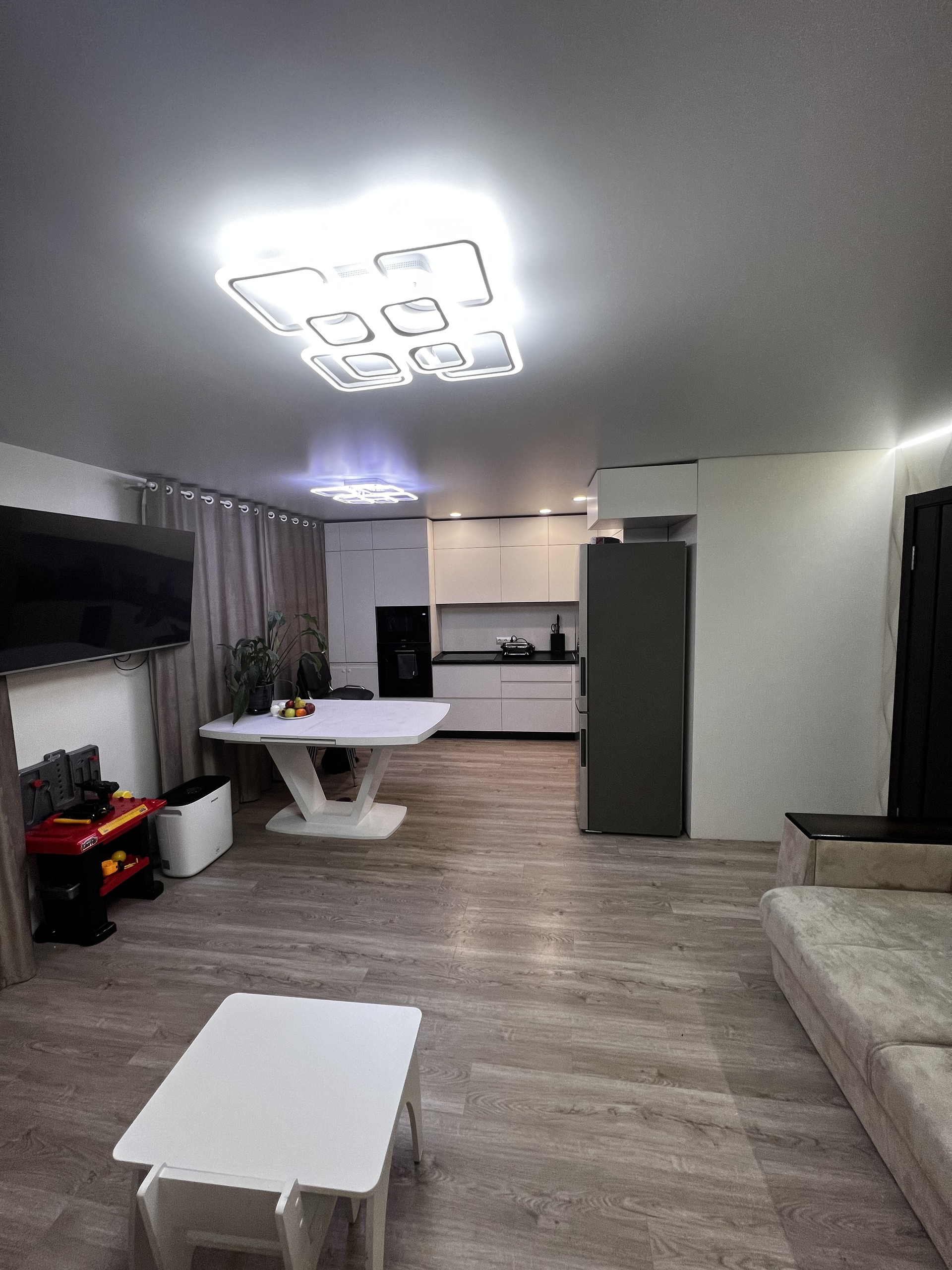 Большая совмещённая кухня-гостиная.
