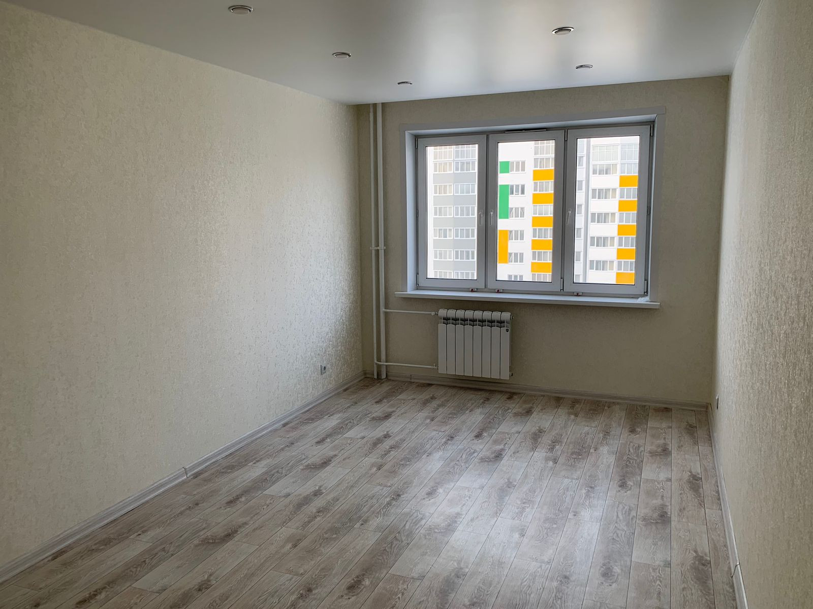 Окна выходят во двор на детскую и спортивную площадки.