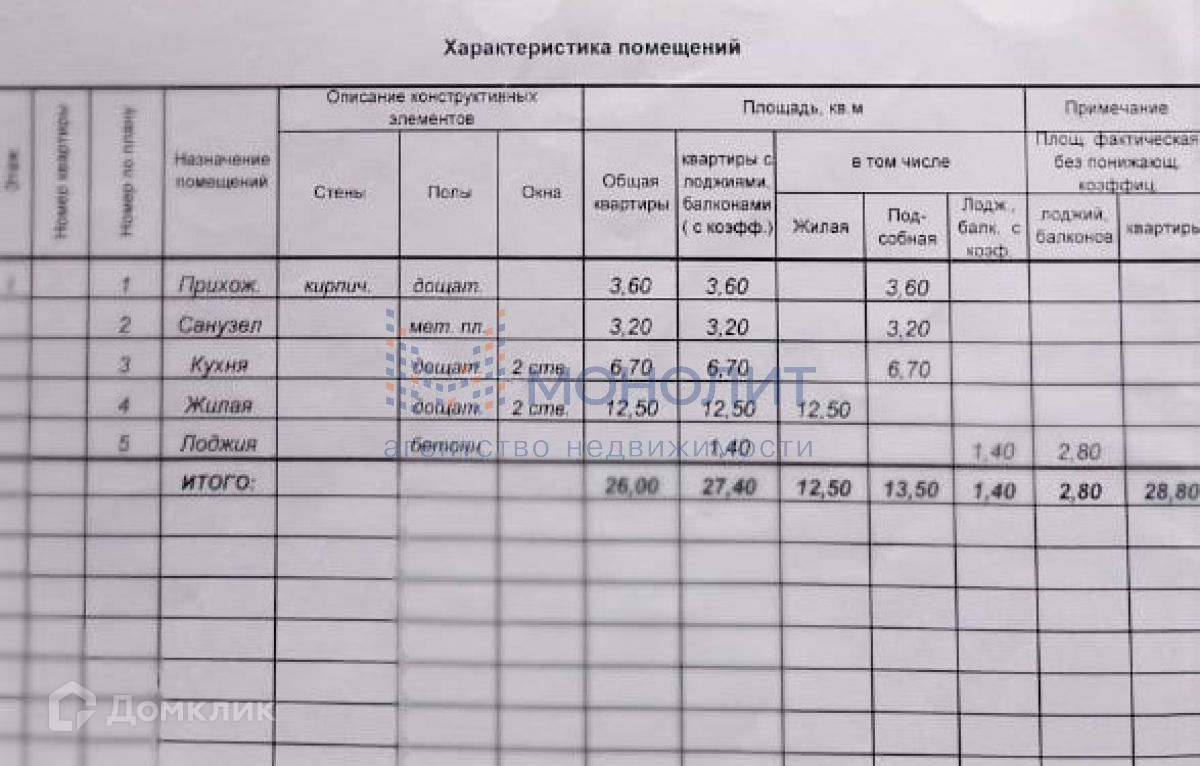 Общая площадь 28.8 м2