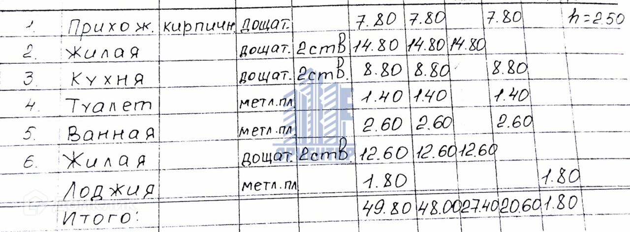 Общая площадь 49.8 м2
