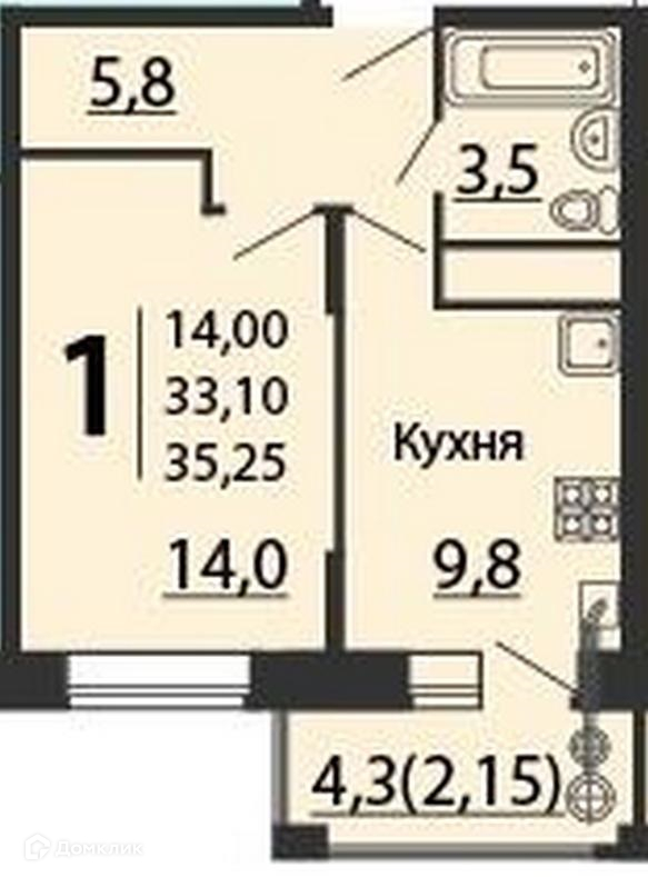Жилая площадь 14.1 м2