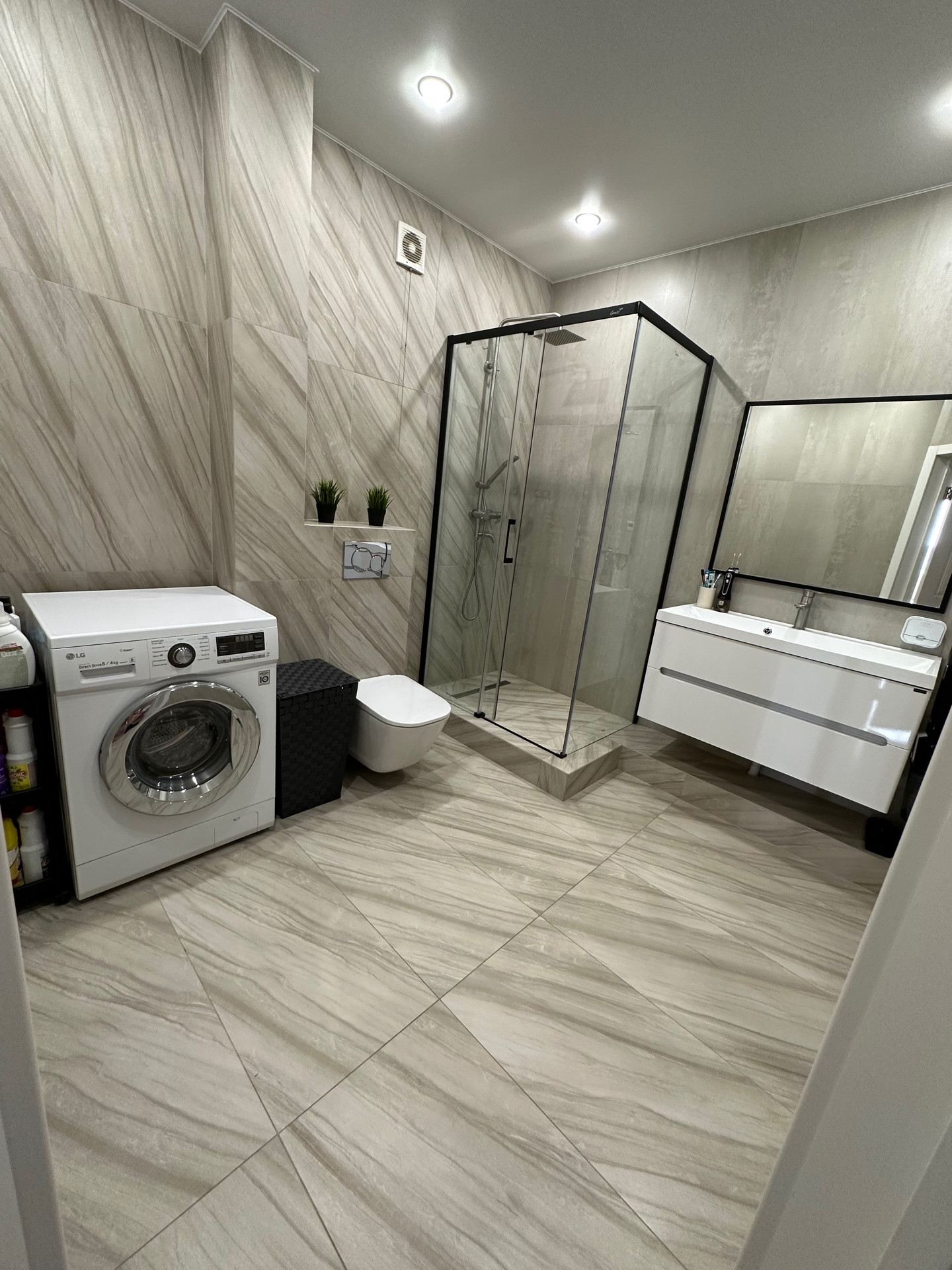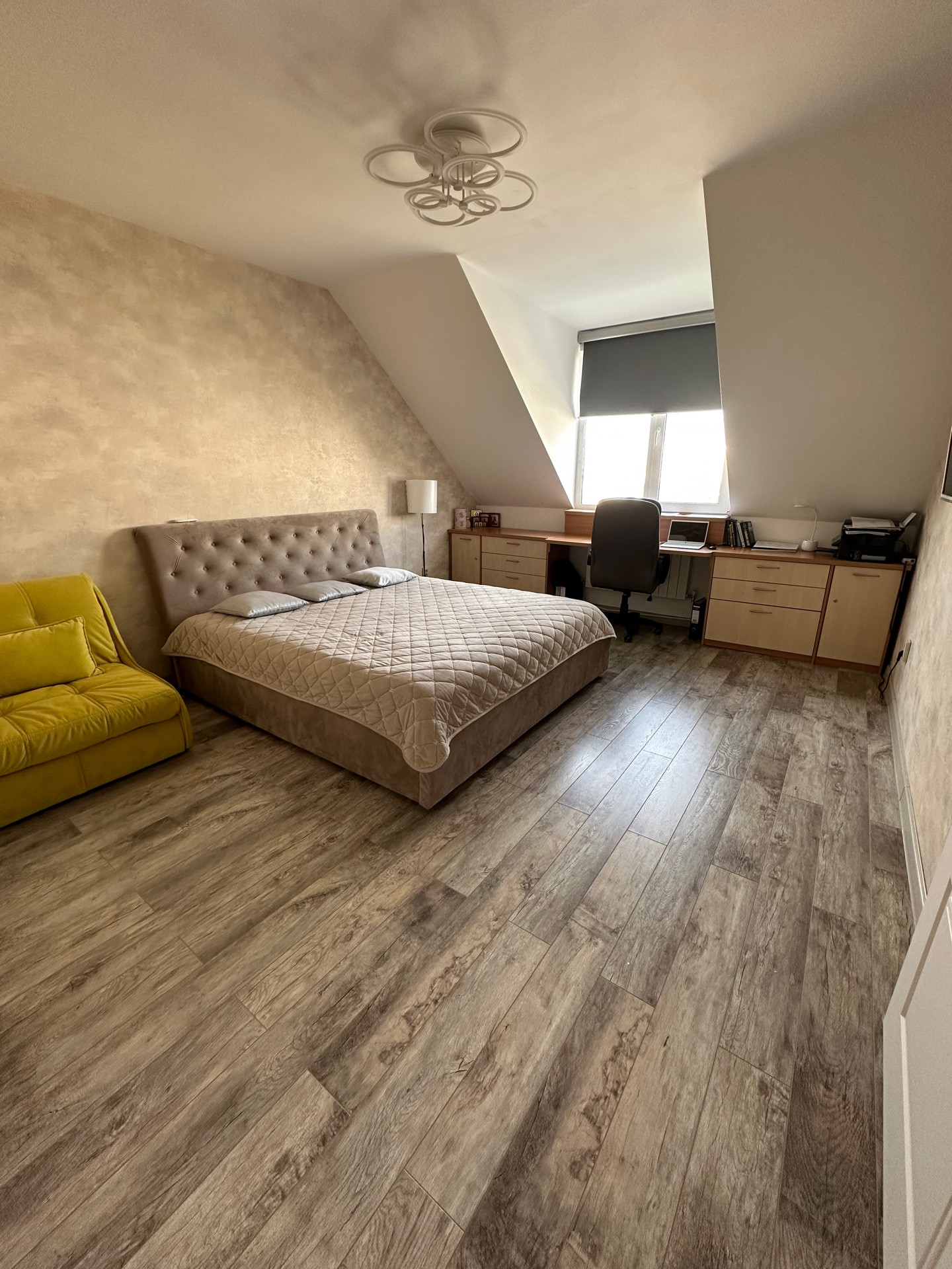 В квартире выполнен дизайнерский ремонт с использованием качественных дорогих материалов. Ремонт свежий. Наполное покрытие: кварцвинил, ламинат. Потолки натяжные. Санузлы в кафельной плитке Italon.